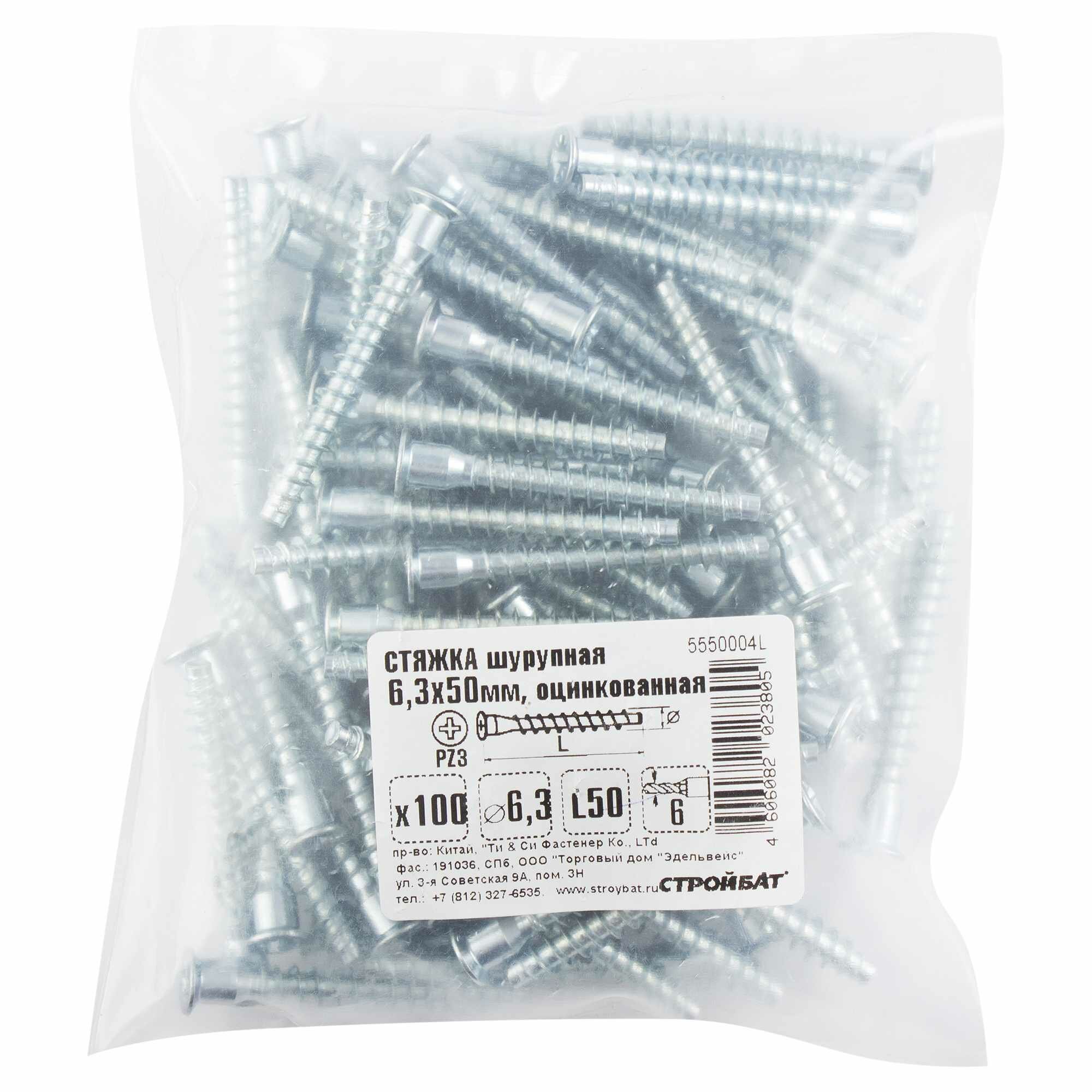 Стяжка мебельная шурупная PZ 6.3х50 мм цвет хром 100 шт. Леруа Мерлен