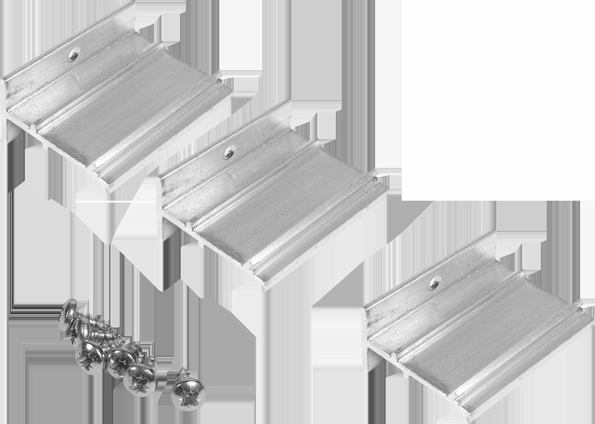 В комплект входят три стальных Т-образных крепежа и 6 саморезов. Изделия подходят для совместного использования с раздвижными системами Artens.