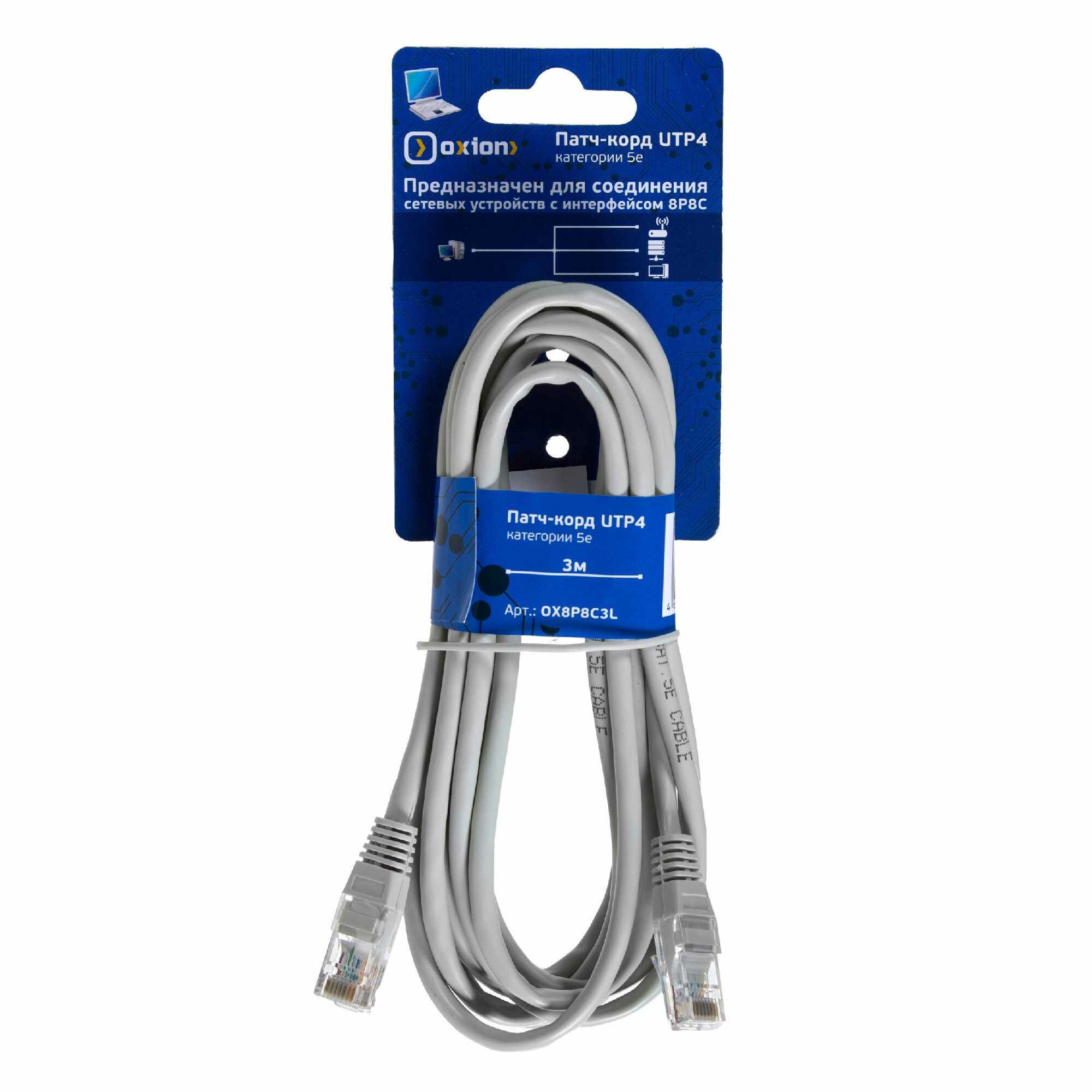 Удлинитель компьютерный UTP4 cat5e 3 м цвет серый Oxion (OX8P8C3L)