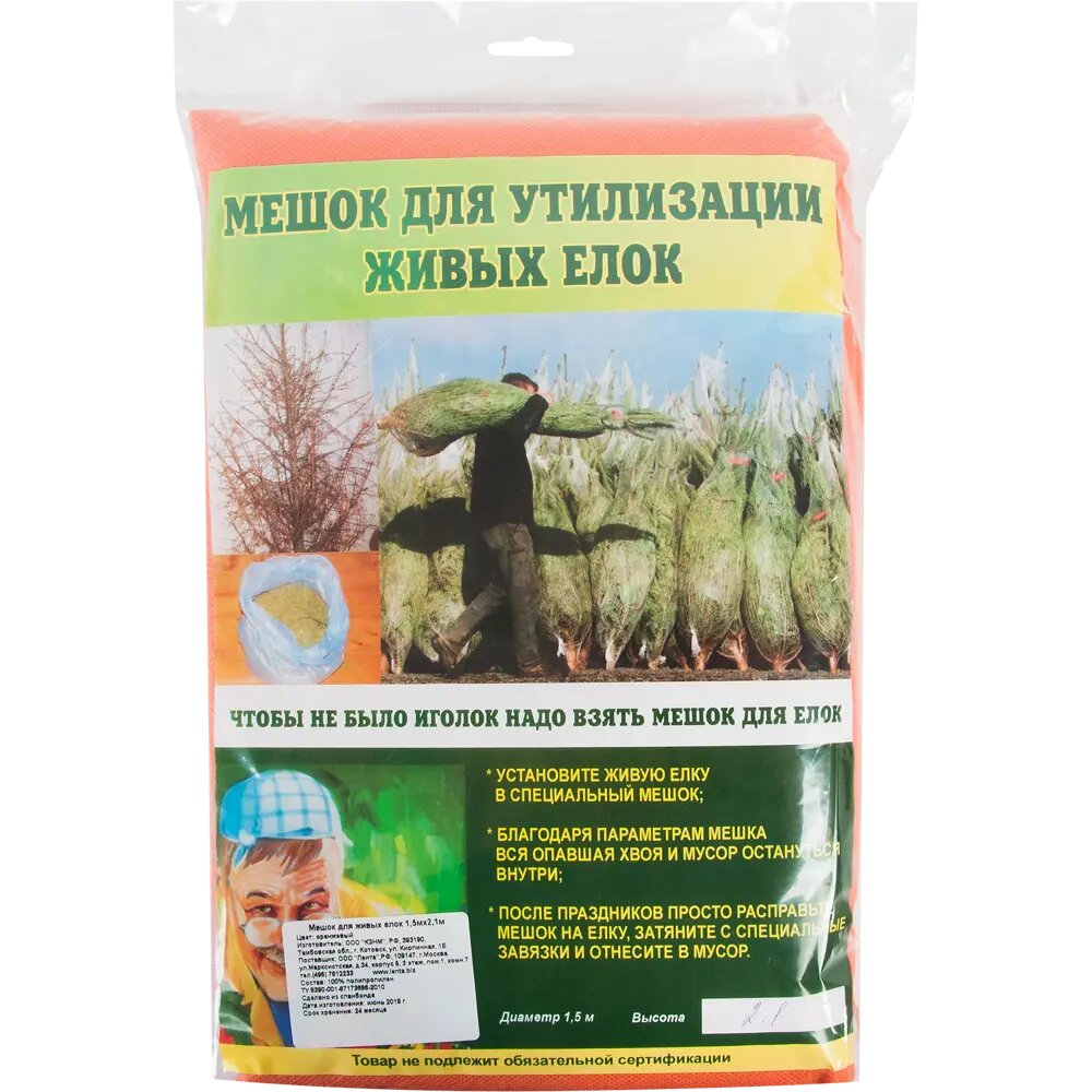 Мешок для живых елок — это оптимальное решение для борьбы с опавшими сухими иголками, которые традиционно устилают ковры по прошествии новогодних каникул. Чтобы избавиться от мусора (иголок, мелких веточек), достаточно установить живую елку в мешок, а после расправить и надежно упаковать дерево с помощью специальных завязок. Елка готова к транспортировке: ее ветки не будут мешать, иголки — осыпаться, а квартира останется идеально чистой.