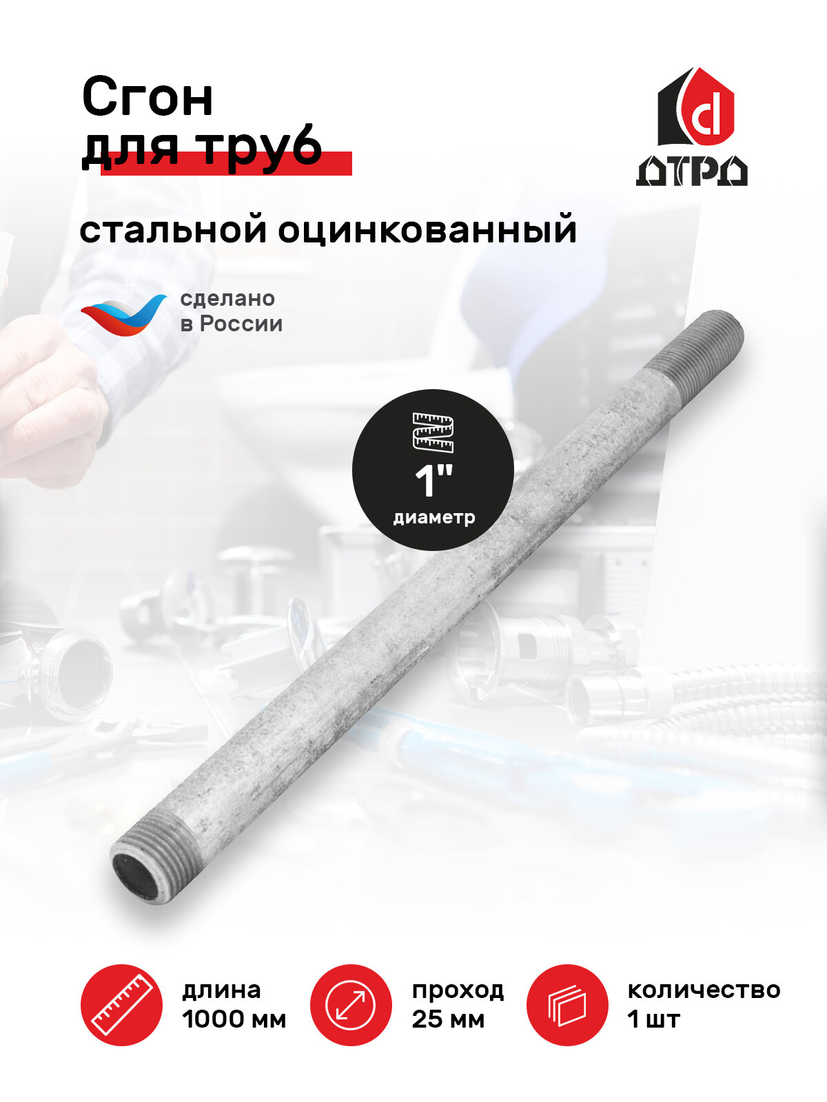 Сгон – предназначен для соединения водогазопроводных труб, с применением уплотнителя, в системах отопления, водопровода, газопровода и других системах, работающих в условиях неагрессивных сред (вода, насыщенный водяной пар, горючий газ и др.) при температуре проводимой среды не выше 175°С и давлении Р=1,6 МПа. Оцинкованные стальные сгоны изготовлены из оцинкованной «горячем цинкованием» трубы, цинковое покрытие по всей поверхности толщиной не менее 30 мкм. К сгонам предъявляются особые требования к качеству производства, они все сведены в ГОСТ 8969-75. «Части соединительные стальные с цилиндрической резьбой для трубопроводов Р=1,6 МПа. Сгоны. Основные размеры» Для производства стальных сгонов используют трубы, изготовленные в соответствии с ГОСТ 3262-75 и ГОСТ 10704-91. Толщина стенки 3,2 мм выполнена из трубы ВГП "обычная".