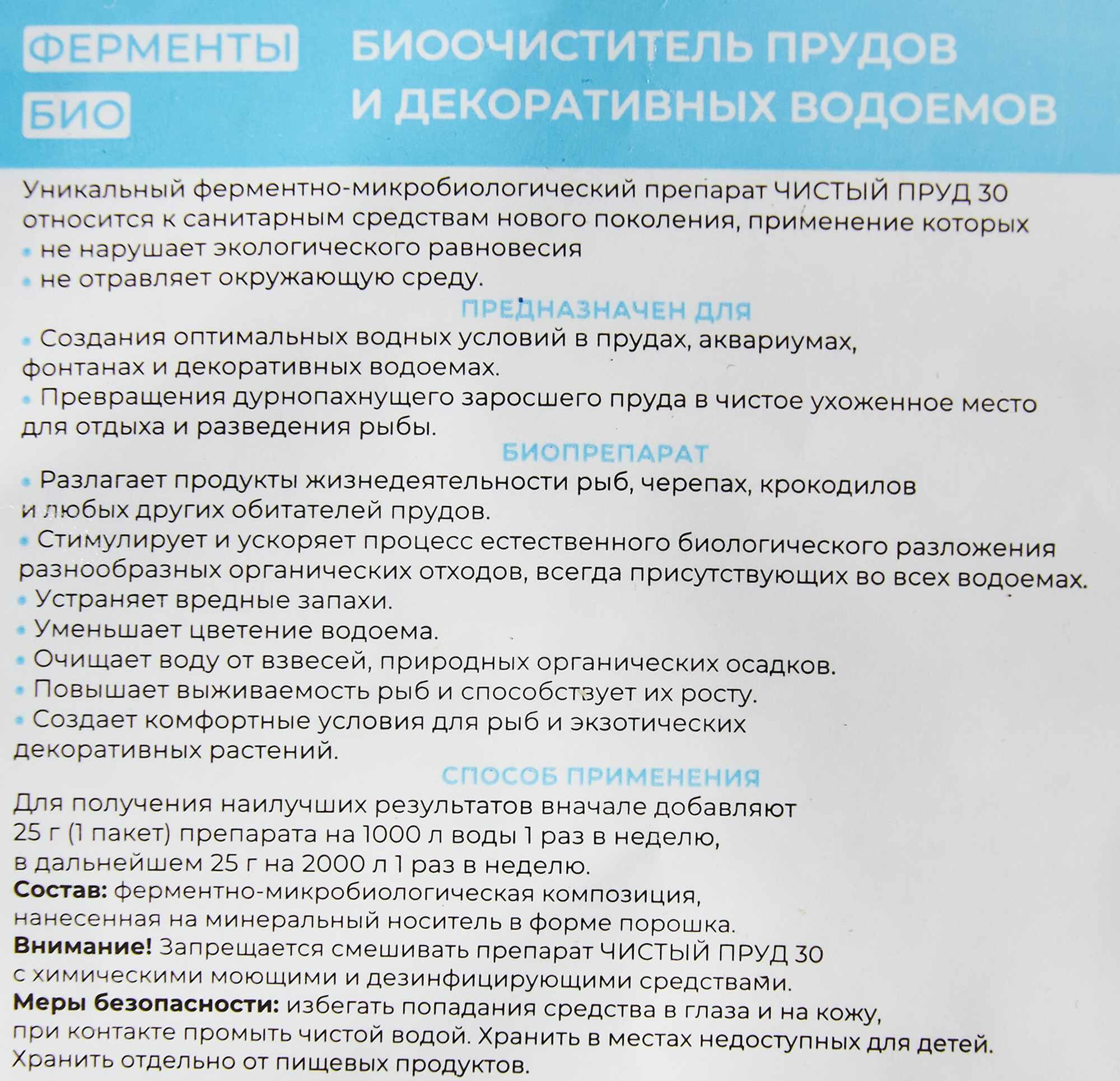 Разлагает продукты жизнедеятельности рыб, черепах, крокодилов и любых других обитателей прудов;