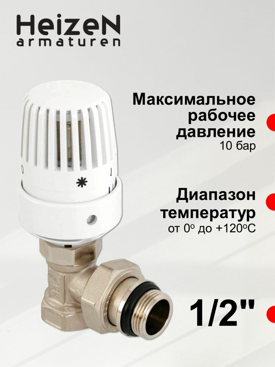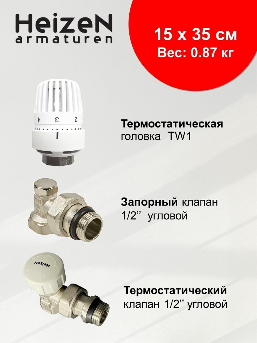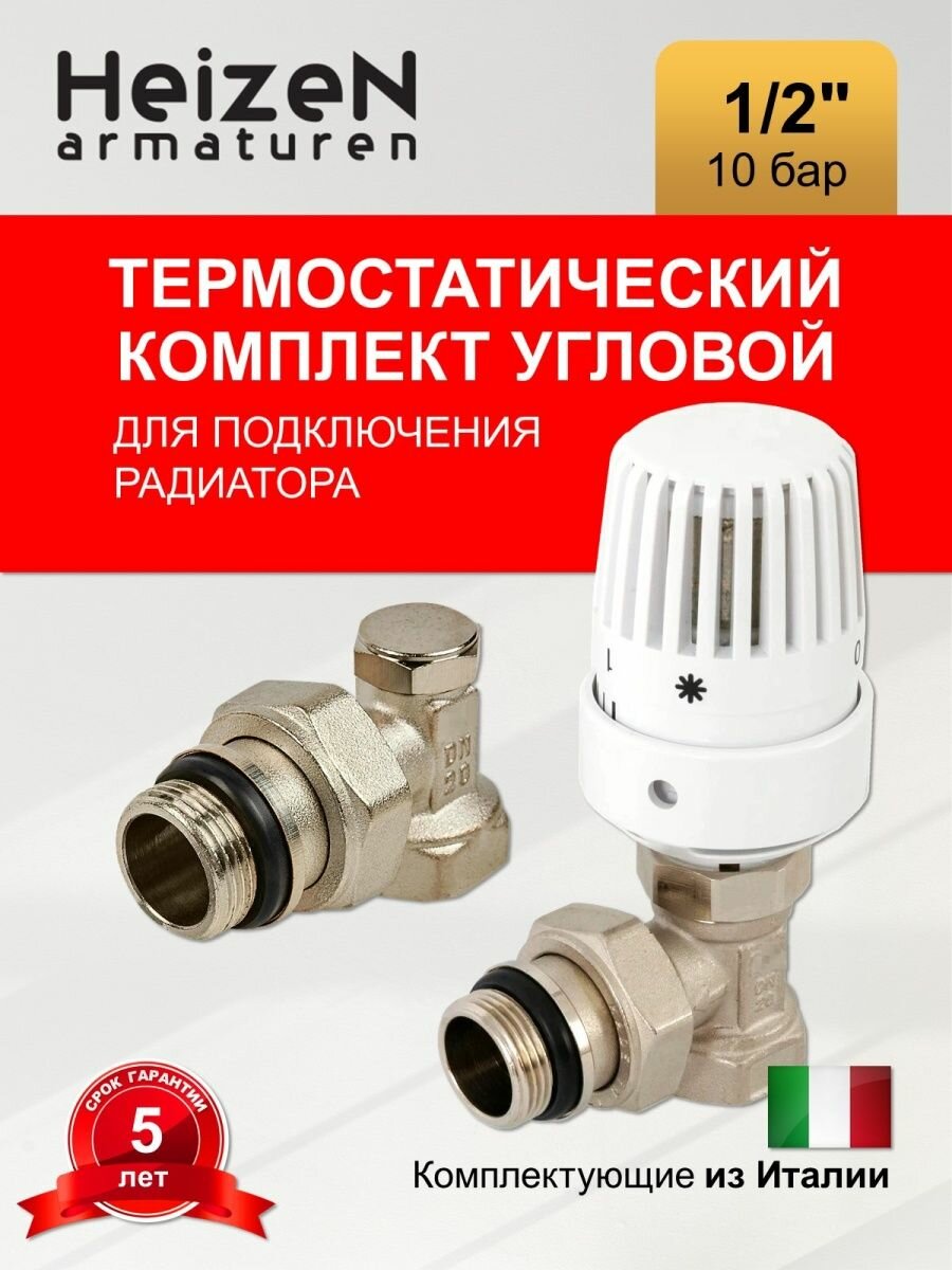 Комплект терморегулирующий Heizen 1/2" угловой для радиатора