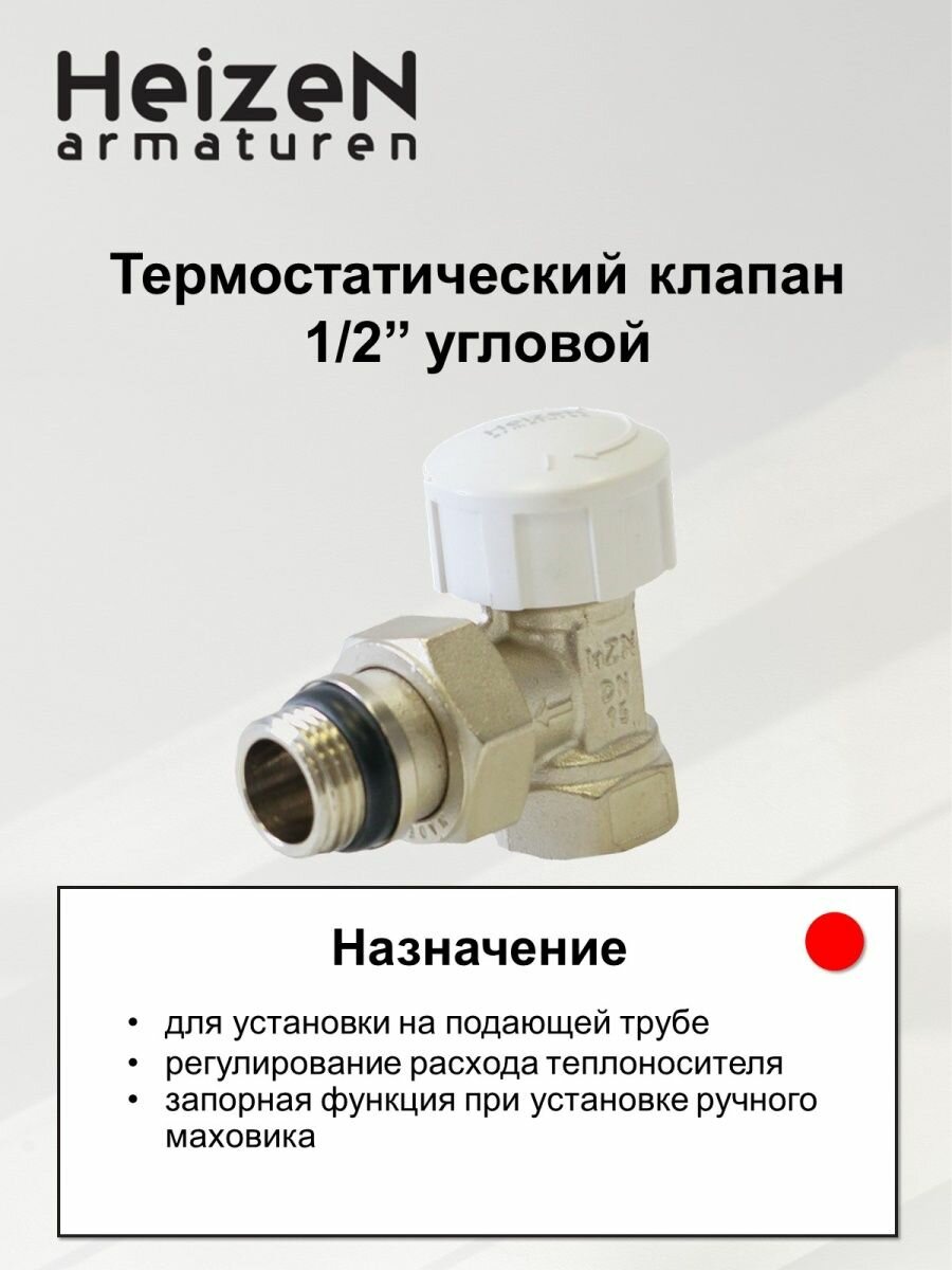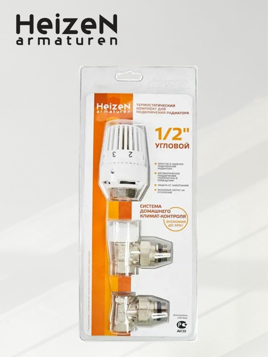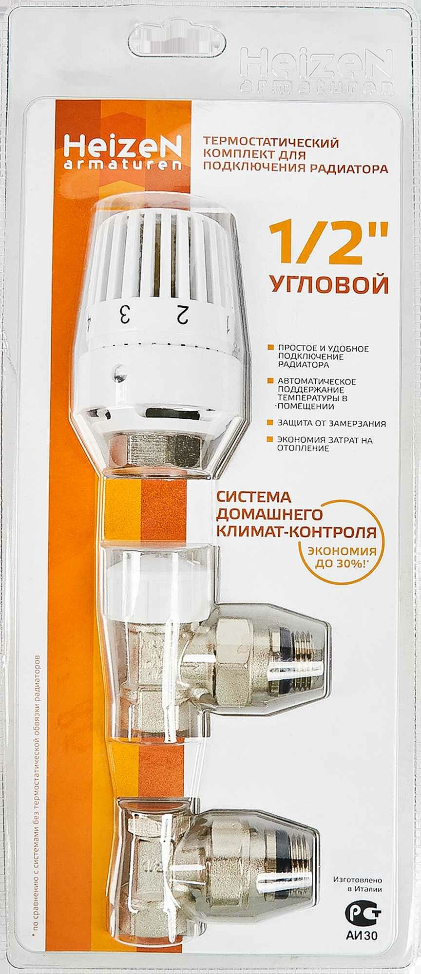 Комплект терморегулирующий Heizen 1/2" угловой для радиатора