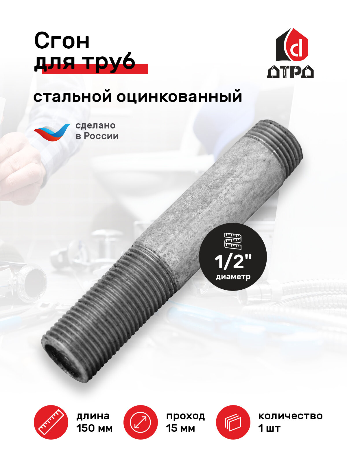 Сгон – предназначен для соединения водогазопроводных труб, с применением уплотнителя, в системах отопления, водопровода, газопровода и других системах, работающих в условиях неагрессивных сред (вода, насыщенный водяной пар, горючий газ и др.) при температуре проводимой среды не выше 175°С и давлении Р=1,6 МПа. Стальные сгоны из черных сортов стали изготовлены в соответствии с требованиями ГОСТ 8969-75. Толщина стенки 2,8 мм выполнена из трубы ВГП "обычная". Для монтажа дополнительно требуется контргайка, муфта и уплотнительный материал.