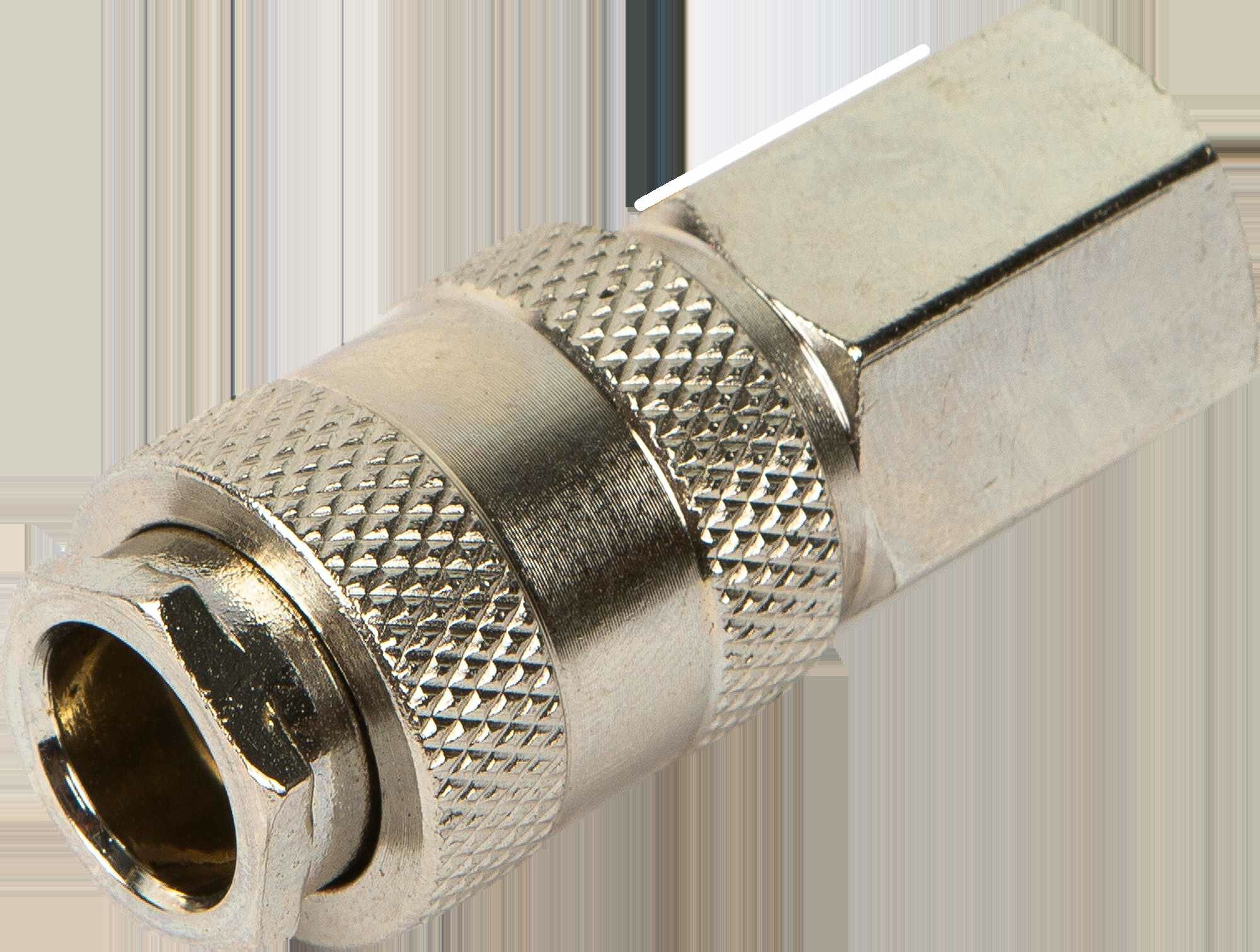 Переходник “мама” 1/4 дюйма – универсальный Dexter используется для подключения различных пневматических инструментов марки Dexter (собственный бренд Леруа Мерлен) к воздушным компрессорам с резьбовым соединением “папа” 1/4 дюйма.