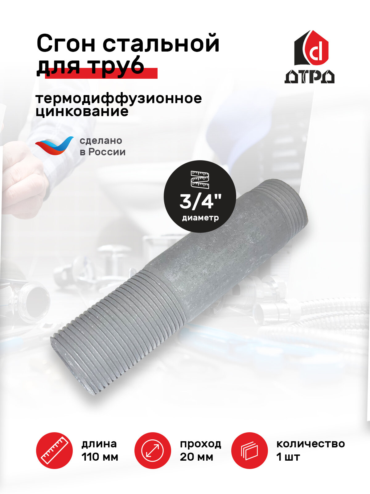 Сгон – предназначен для соединения водогазопроводных труб, с применением уплотнителя, в системах отопления, водопровода, газопровода и других системах, работающих в условиях неагрессивных сред (вода, насыщенный водяной пар, горючий газ и др.) при температуре проводимой среды не выше 175°С и давлении Р=1,6 МПа. Оцинкованные стальные сгоны изготовлены из оцинкованной «горячем цинкованием» трубы, цинковое покрытие по всей поверхности толщиной не менее 30 мкм. К сгонам предъявляются особые требования к качеству производства, они все сведены в ГОСТ 8969-75. «Части соединительные стальные с цилиндрической резьбой для трубопроводов Р=1,6 МПа. Сгоны. Основные размеры» Для производства стальных сгонов используют трубы, изготовленные в соответствии с ГОСТ 3262-75 и ГОСТ 10704-91. Толщина стенки 3,2 мм выполнена из трубы ВГП "обычная".