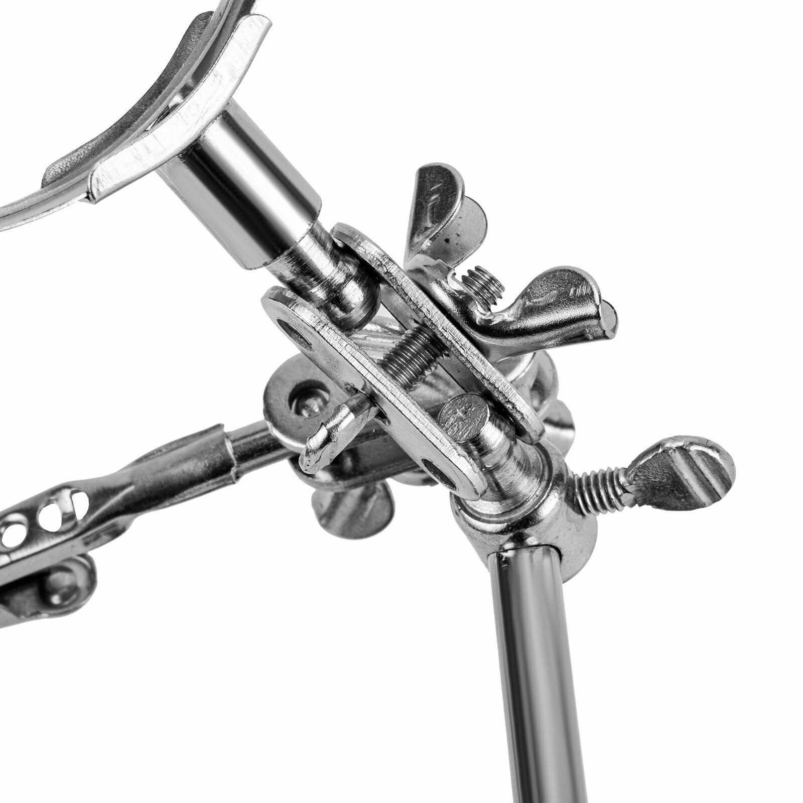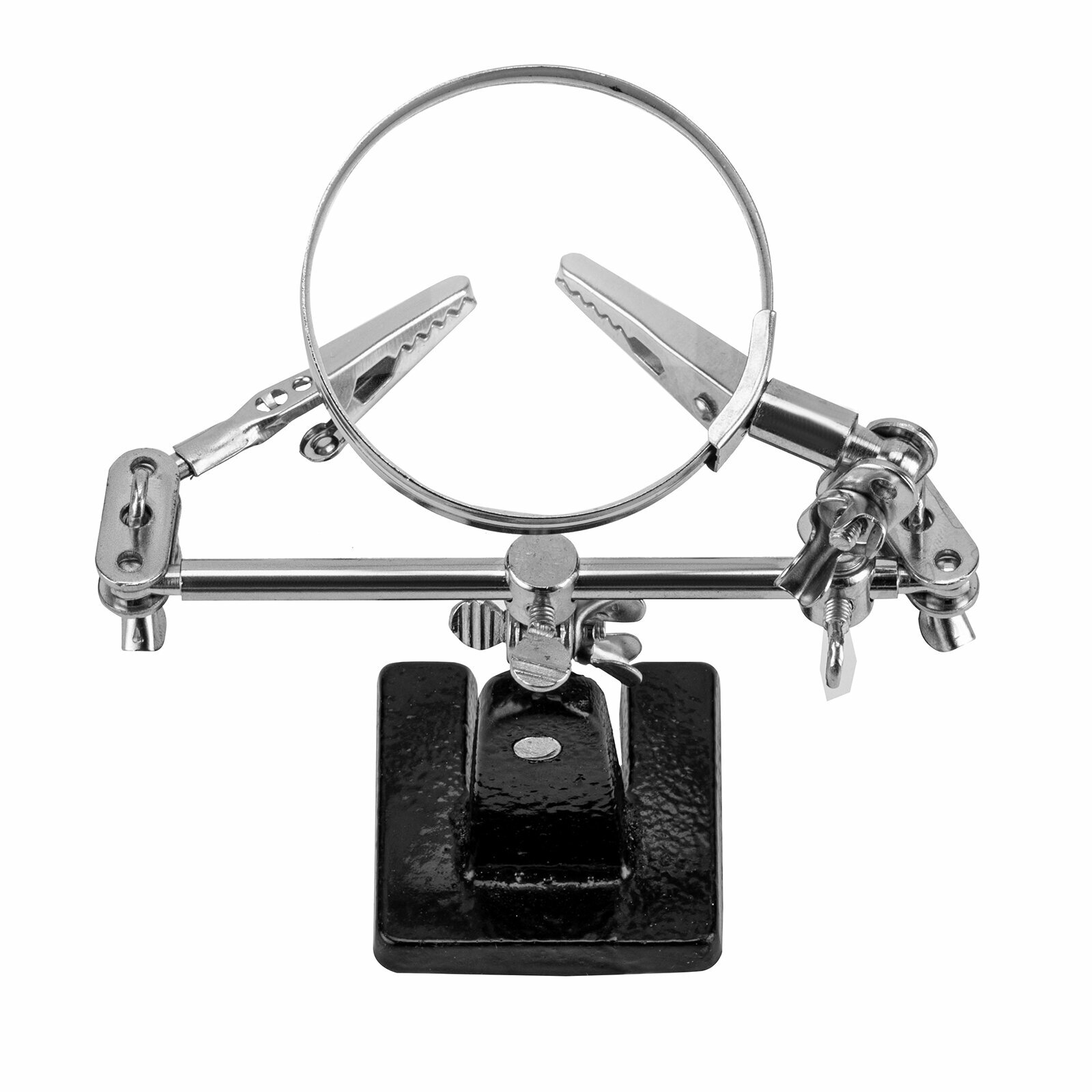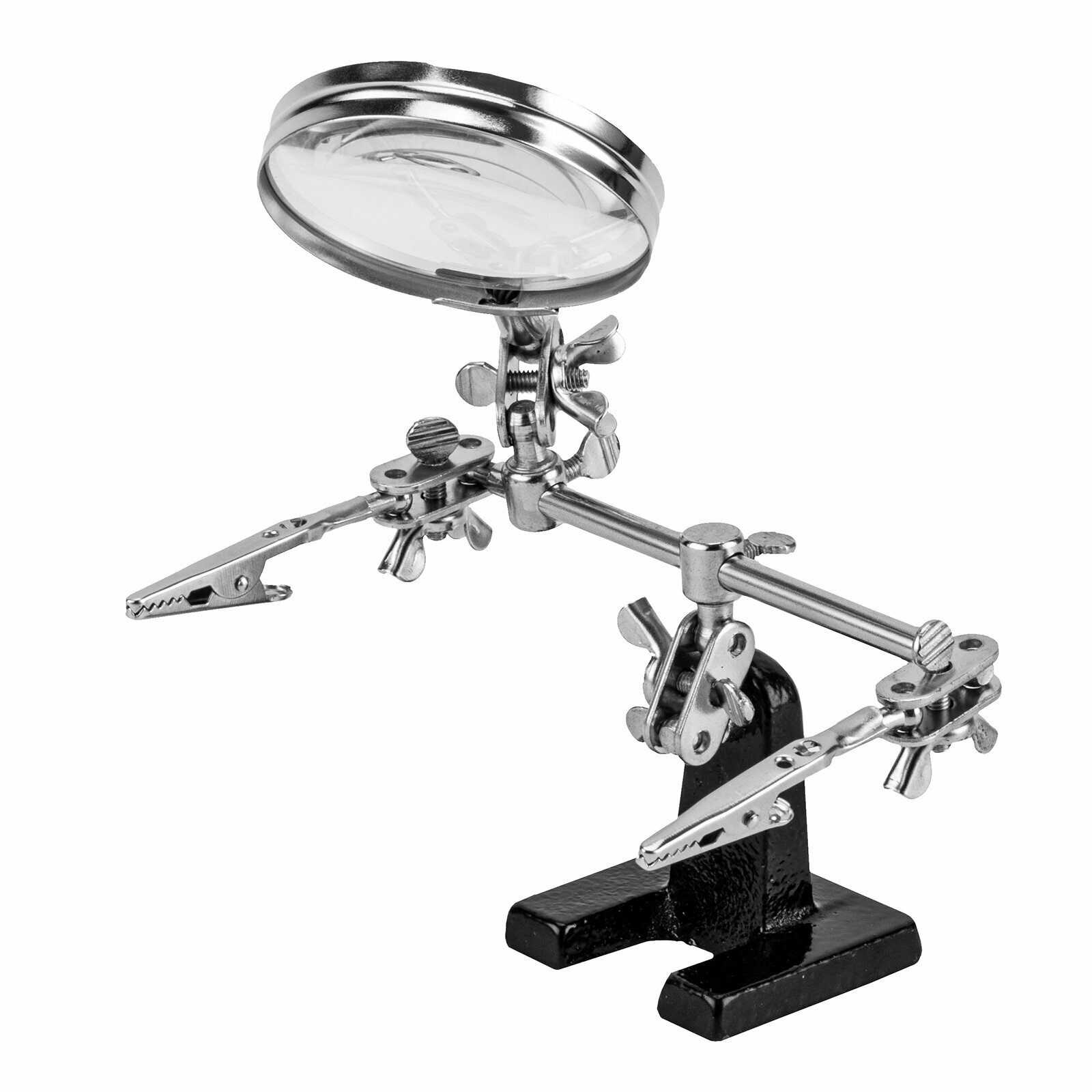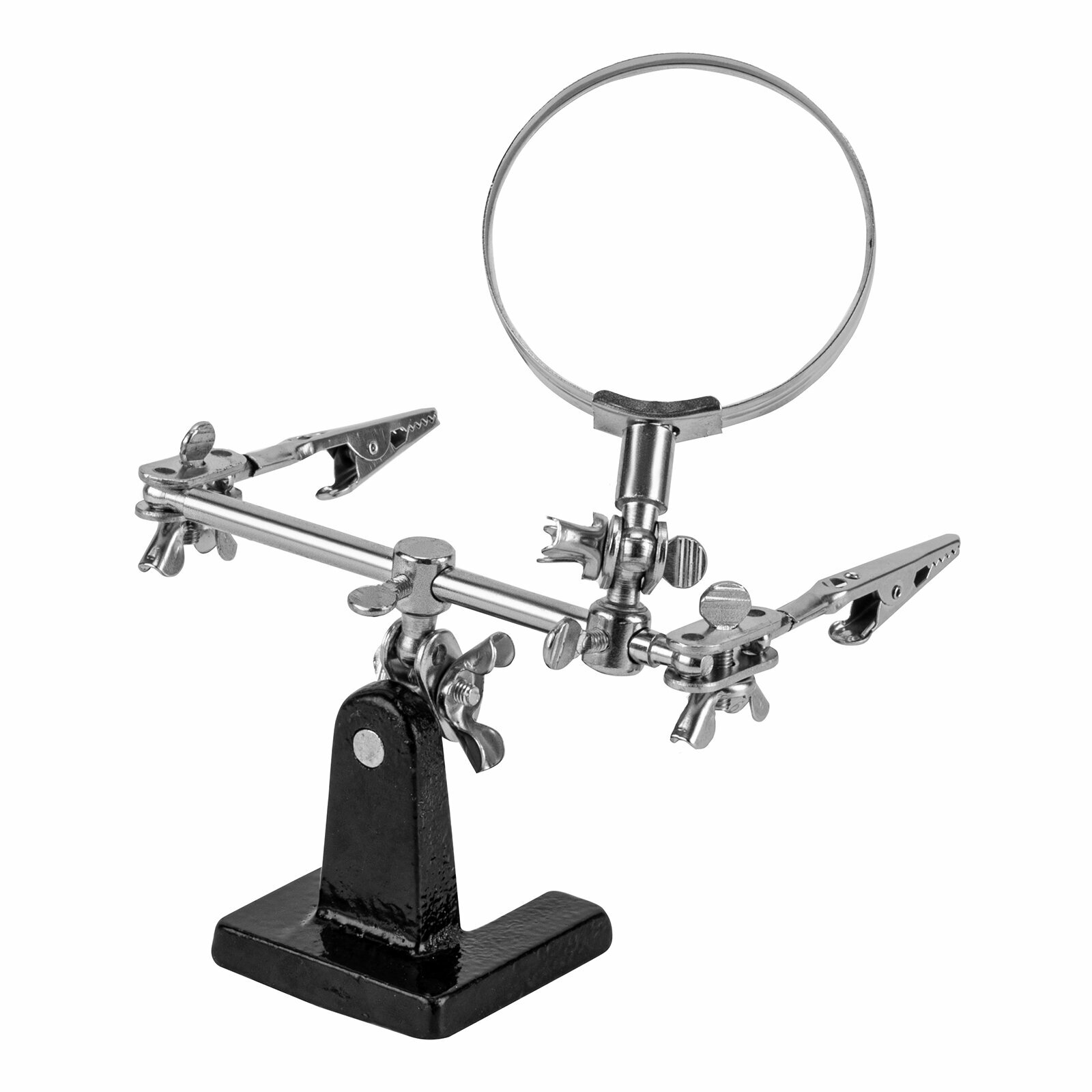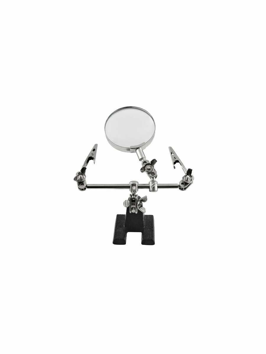 Зажим для пайки с лупой («третья рука») – это удобный, практичный аксессуар, который даёт возможность свободно работать с самыми мелкими деталями и проводами. Благодаря устойчивой станине и надёжным зажимам обеспечивает качественную фиксацию деталей, а мощное увеличительное стекло позволяет выполнять работы намного точнее и аккуратнее.