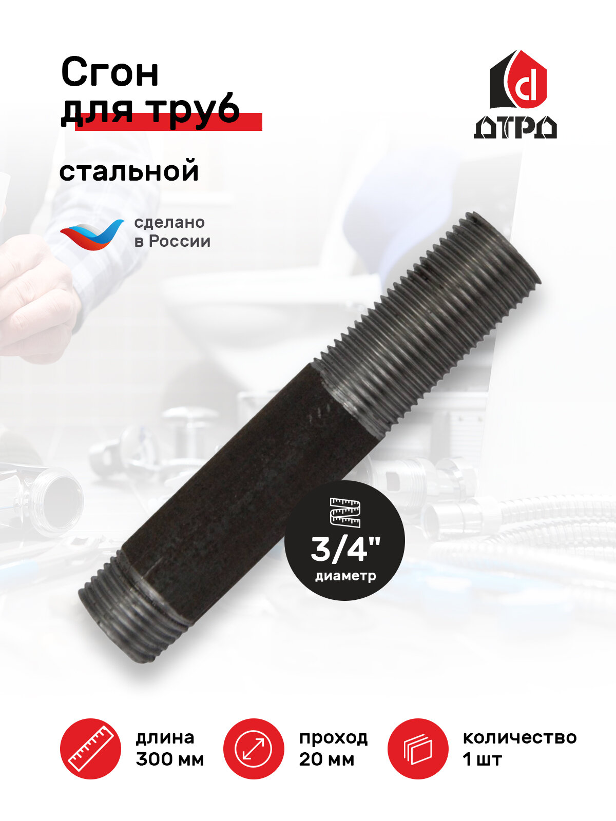 Сгон – предназначен для соединения водогазопроводных труб, с применением уплотнителя, в системах отопления, водопровода, газопровода и других системах, работающих в условиях неагрессивных сред (вода, насыщенный водяной пар, горючий газ и др.) при температуре проводимой среды не выше 175°С и давлении Р=1,6 МПа. Оцинкованные стальные сгоны изготовлены из оцинкованной «горячем цинкованием» трубы, цинковое покрытие по всей поверхности толщиной не менее 30 мкм. К сгонам предъявляются особые требования к качеству производства, они все сведены в ГОСТ 8969-75. «Части соединительные стальные с цилиндрической резьбой для трубопроводов Р=1,6 МПа. Сгоны. Основные размеры» Для производства стальных сгонов используют трубы, изготовленные в соответствии с ГОСТ 3262-75 и ГОСТ 10704-91. Толщина стенки 2,8 мм выполнена из трубы ВГП "обычная". Для монтажа дополнительно требуется контргайка, муфта и уплотнительный материал. Нанесение резьбы на оцинкованные трубы проводят после оцинкования.