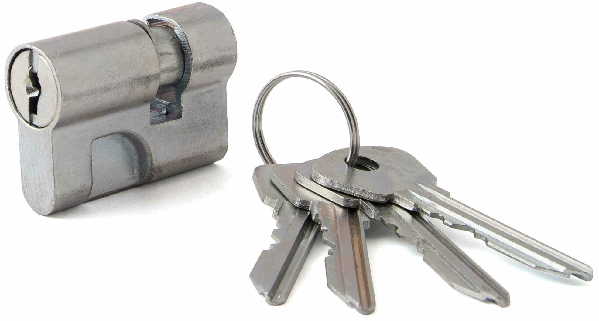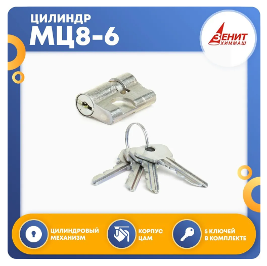 Цилиндровый механизм МЦ8-6 – бюджетный вариант для комплектации дверного замка. Тип механизма – евроцилиндр. Подходит для двери толщиной 35-40 мм. Материал, из которого изготовлен механизм – силумин. Цвет цилиндра – хром-сатин. Относится к цилиндровому механизму секретности. Конфигурация – ключ-ключ. В комплект входят 4 английских ключа. Преимущества: - простота и надежность конструкции; - невысокая цена изделия; - длительный срок службы. Для приобретения запорного механизма любой сложности можно обратиться в ближайший торговый центр сети «Леруа Мерлен», где в специализированном отделе вам предложат большой ассортимент этих изделий по доступным ценам.