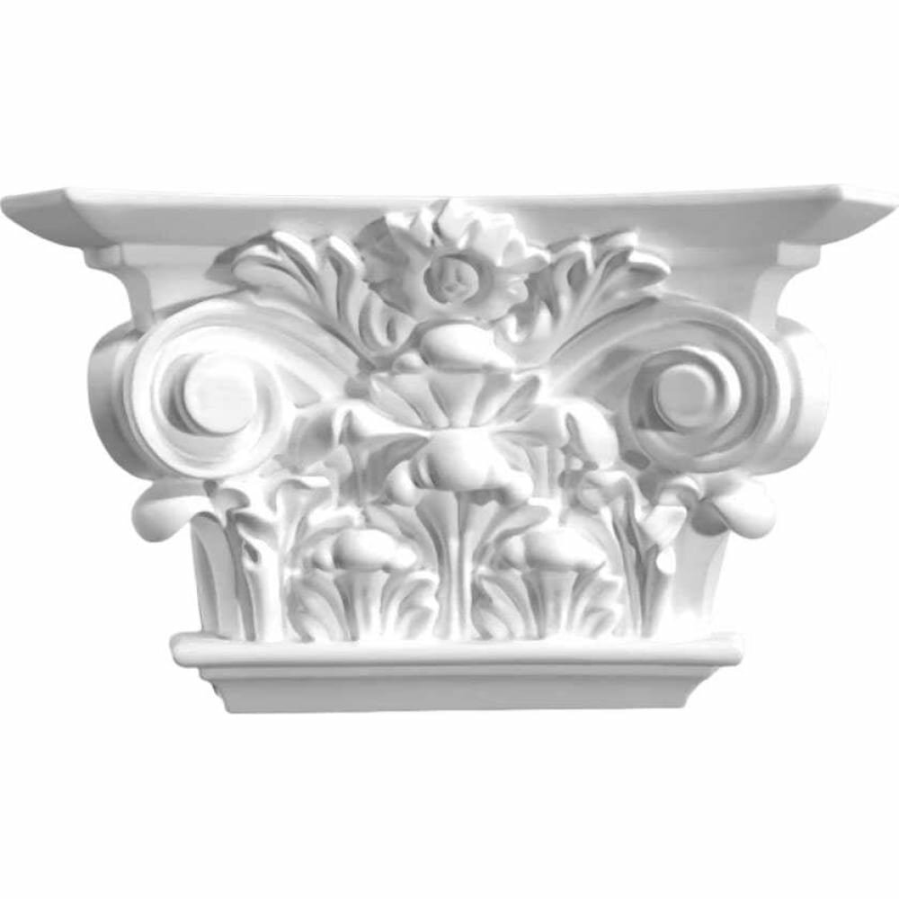 Капитель к пилястре марки Decomaster DK-82221 выполняет функцию декоративного элемента – лепнины. Его применение позволяет улучшить визуально пространство помещения, так как простое прямоугольное окончание пилястры выглядит грубо, режет глаз. Изготавливается такой элемент интерьера из полиуретана. Материал этот отличается низкой плотностью, высокой прочностью, долговечностью, технологичностью. Его можно окрашивать, подбирая требуемый цвет. Полиуретановая капитель легко прикрепляется к стене с помощью универсального клея.