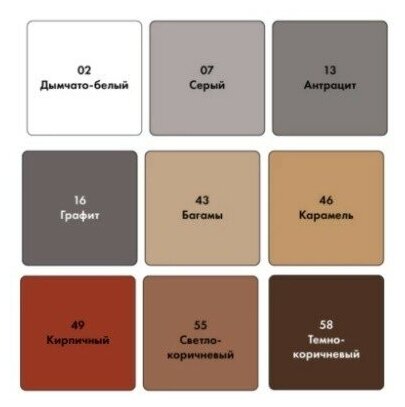 | Состав | цемент, минеральные заполнители, модифицирующие добавки, пигменты |