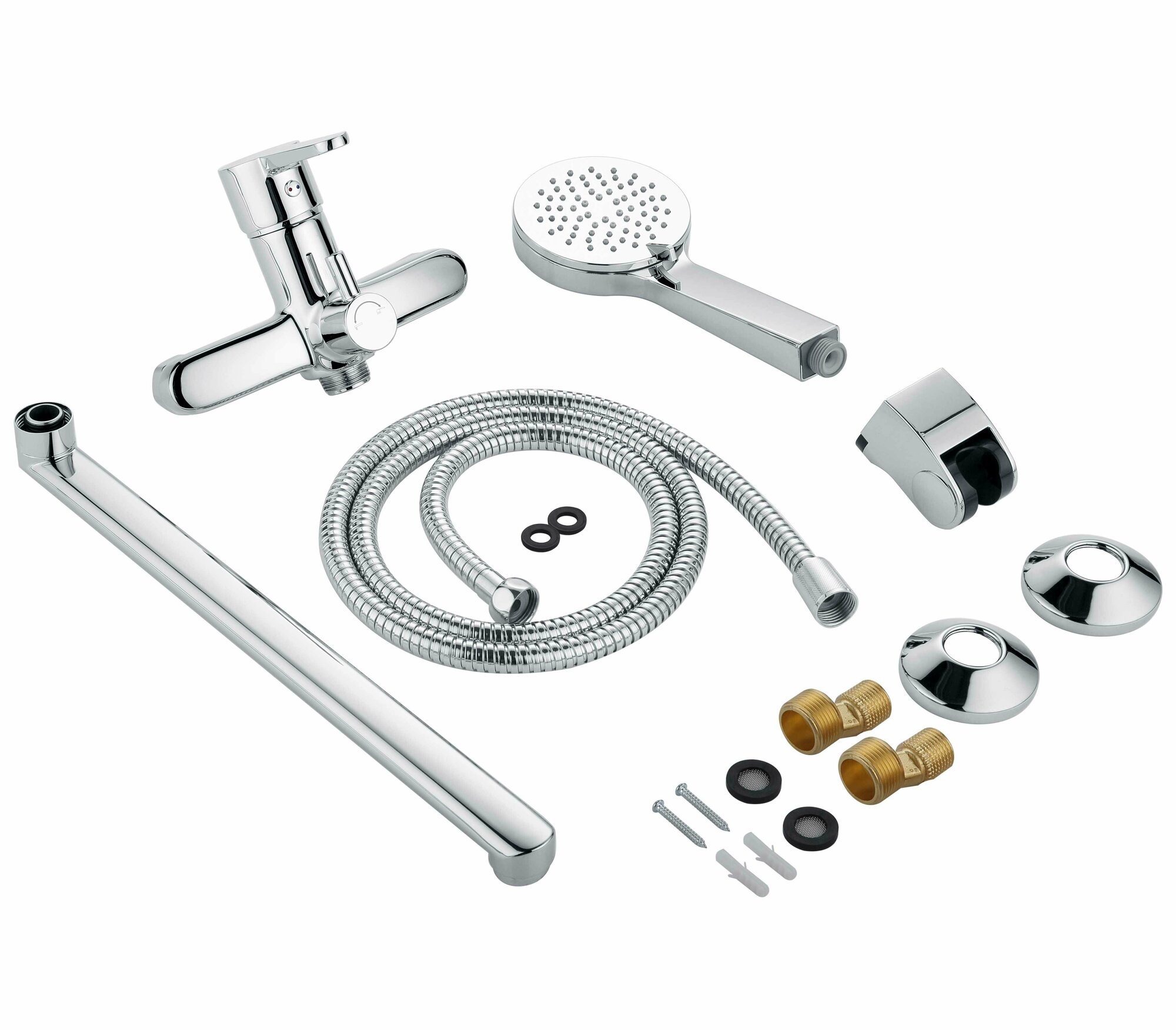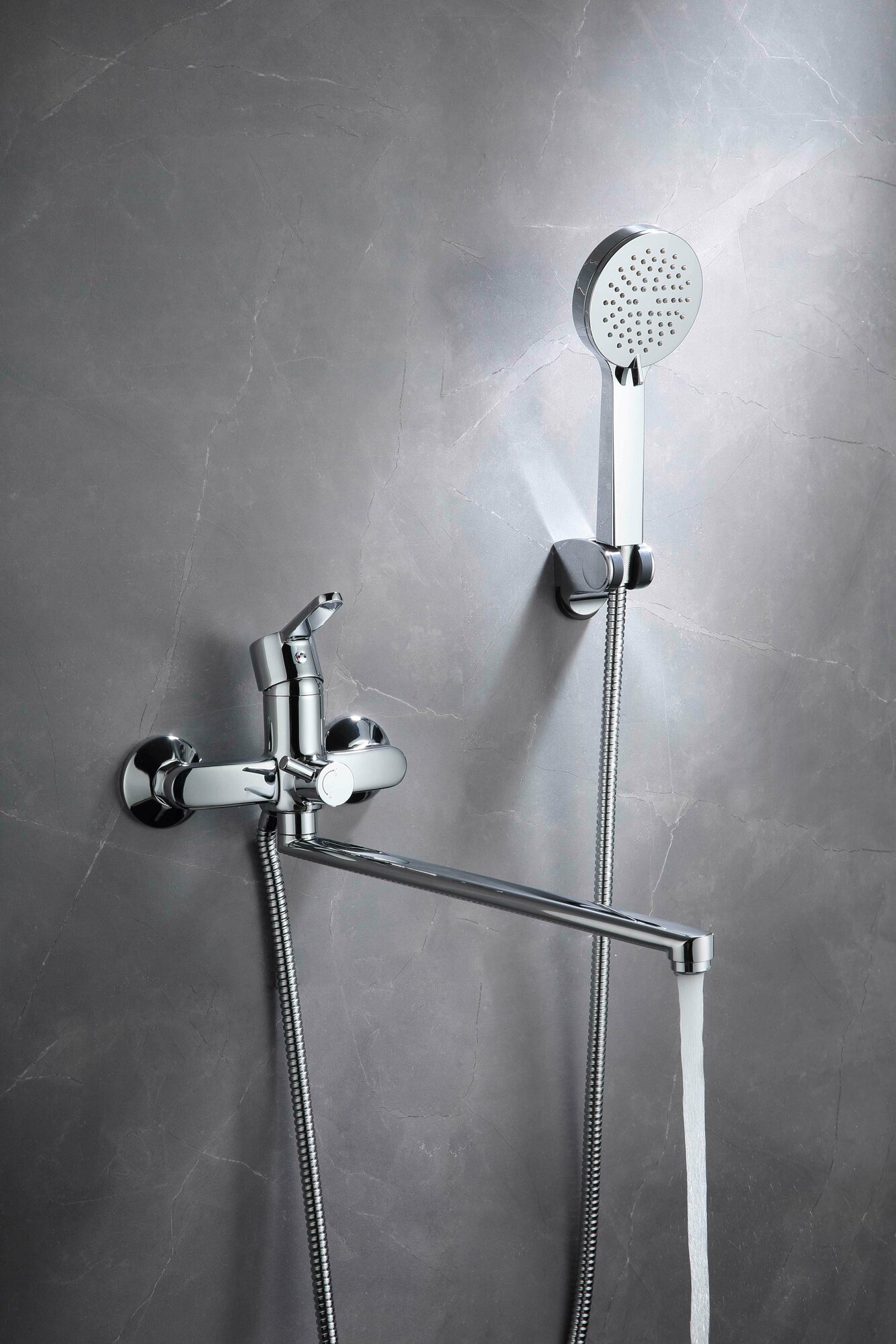 в комплекте душевой шланг, лейка и настенный держатель для лейки;