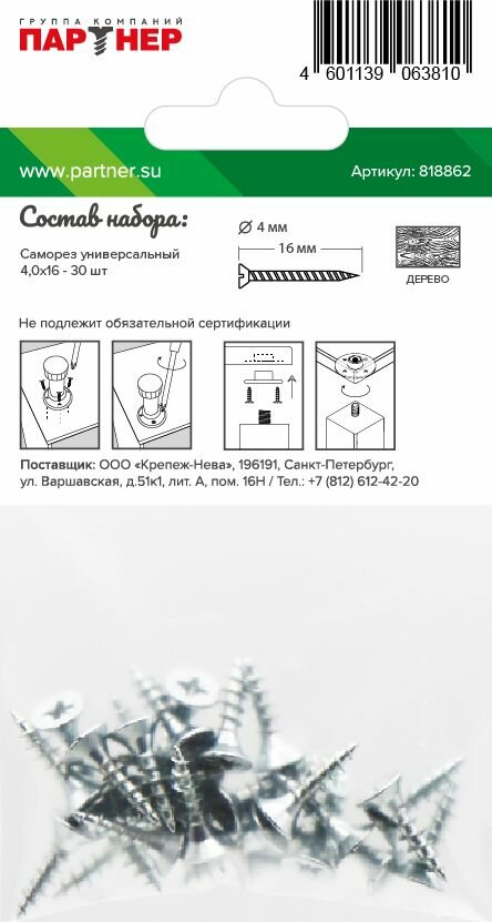 Комплект для крепления ножек саморез ШУЦ 4х16 мм — предназначен для крепления деталей к металлу, дереву, пластмассе и прочим основаниям. Другое название — самонарезающий шуруп для крепления ножек ЩУЦ. Шуруп острый, используется для крепления ножек к основанию из дерева, пластика или металла. Монтаж осуществляется с помощью электроинструмента.