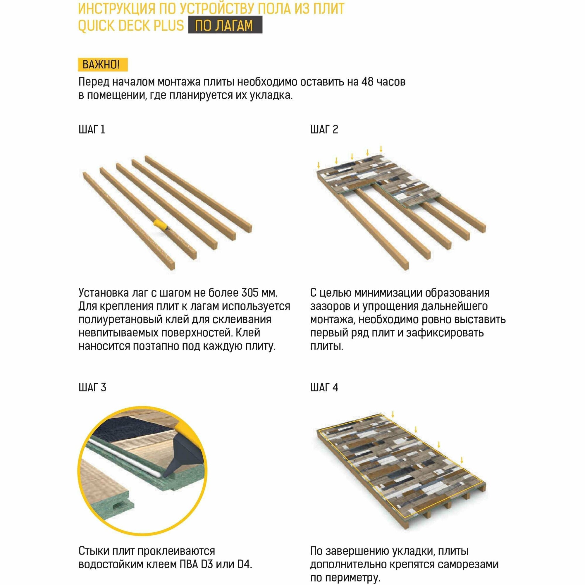 Укладка плит осуществляется на лаги или «плавающим методом».