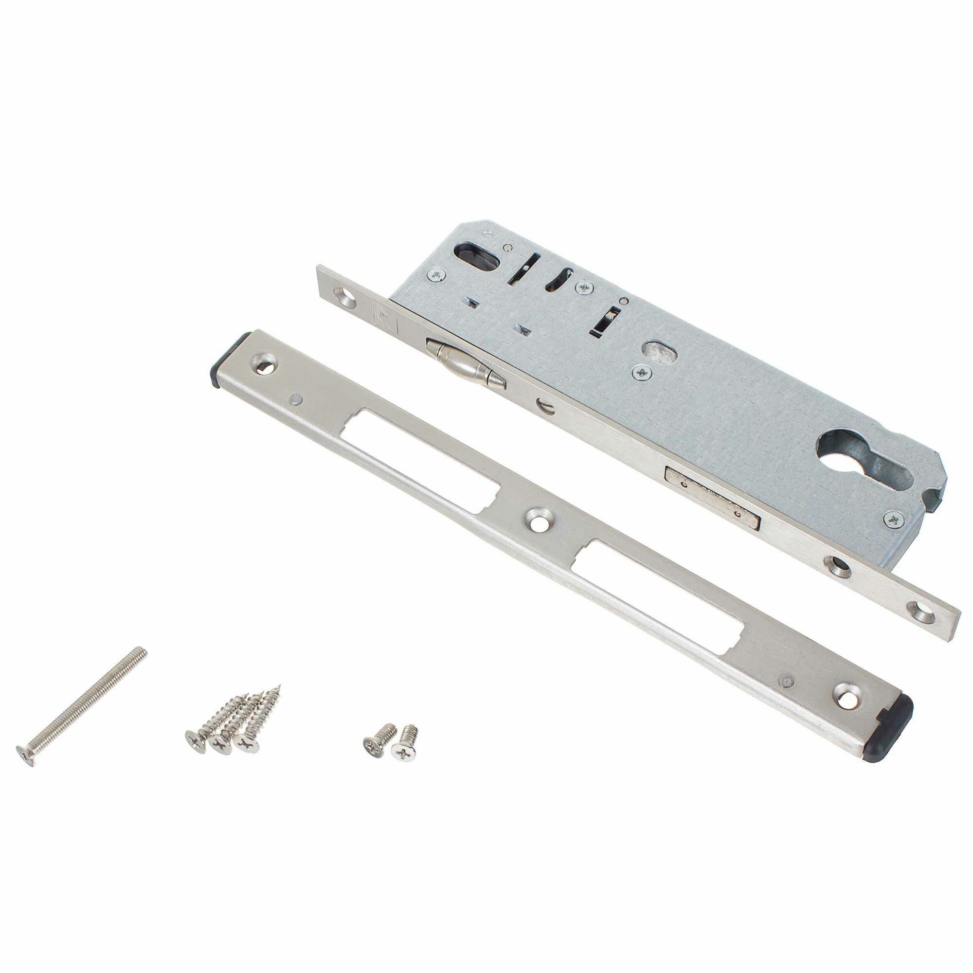 Врезной замок Apecs с округлой защелкой предназначен для установки на входных дверях в жилых, складских и коммерческих помещениях. Замок с широким ригелем поставляется без личинки с комплектом накладок на дверь и дверную коробку, выполненных из никелированной стали. Особенности: - один широкий ригель; - подходит для цилиндрических механизмов; - высокая степень защиты от взлома; - все необходимое для монтажа в комплекте. В интернет-каталоге Leroy Merlin вы сможете подобрать подходящие по цене и характеристикам дверные замки. Покупайте выгодно в наших магазинах!