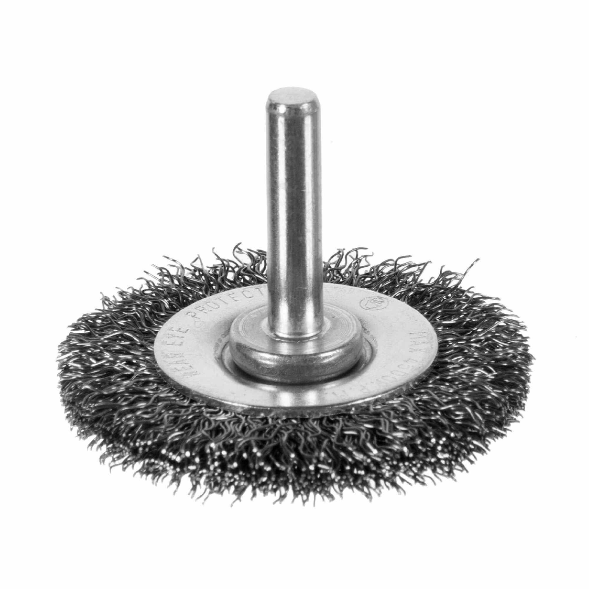 Щетка для дрели дисковая Dexter — точильная насадка для чистки металлических поверхностей в узких местах: снятия сварных наплывов, удаления краски, ржавчины, окалины. Рабочая часть представляет собой щетину из металлической проволоки толщиной 1 мм. Для надежной фиксации в патроне предусмотрен цилиндрический стержень диаметром 6 мм. Страна производства — Китай.