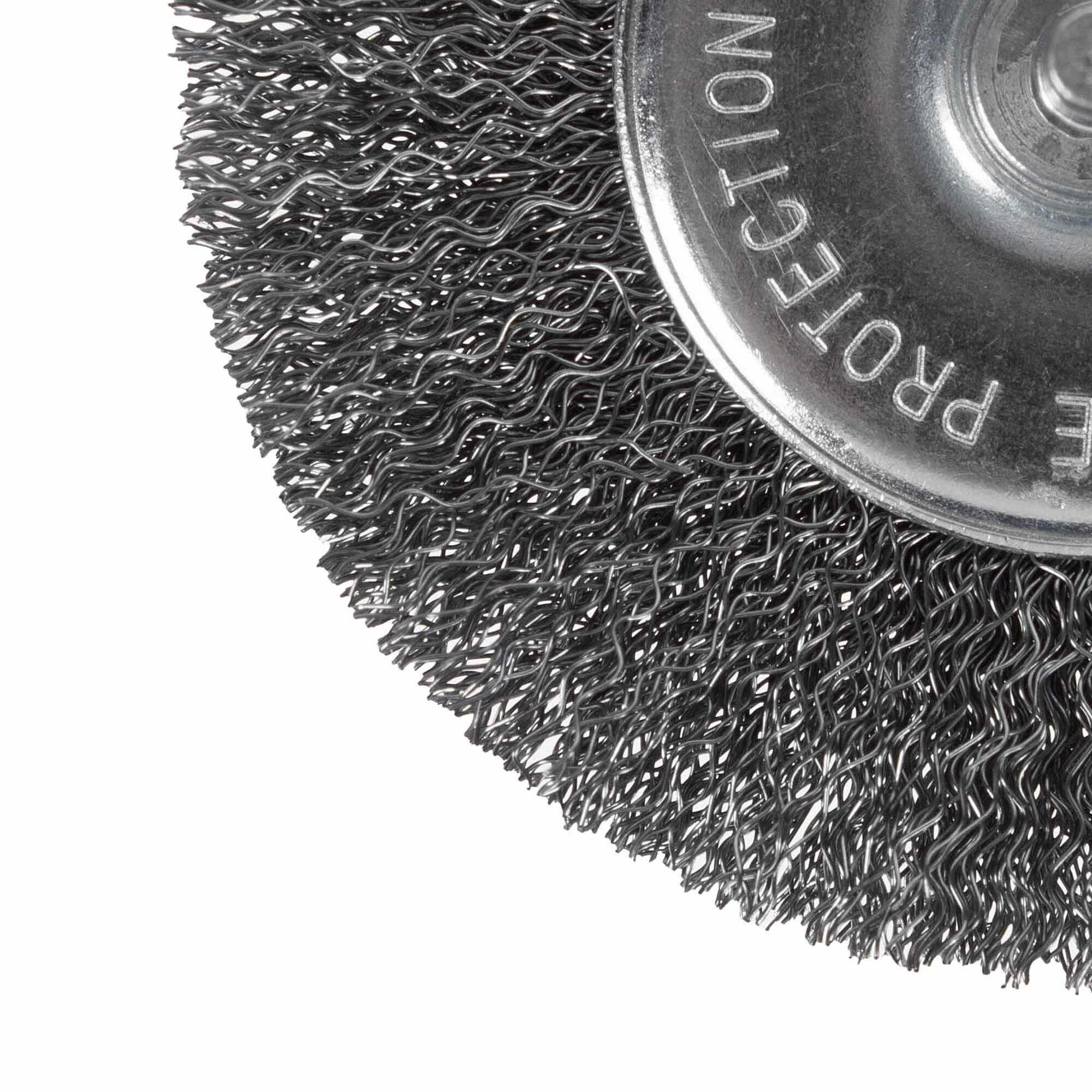 Металлическая дисковая щетка Dexter для дрели диаметром 100 мм – это легкая и удобная в работе насадка, с помощью которой можно очистить металлическую или деревянную поверхности от грязи, застаревшей краски, заусенцев и ржавчины.