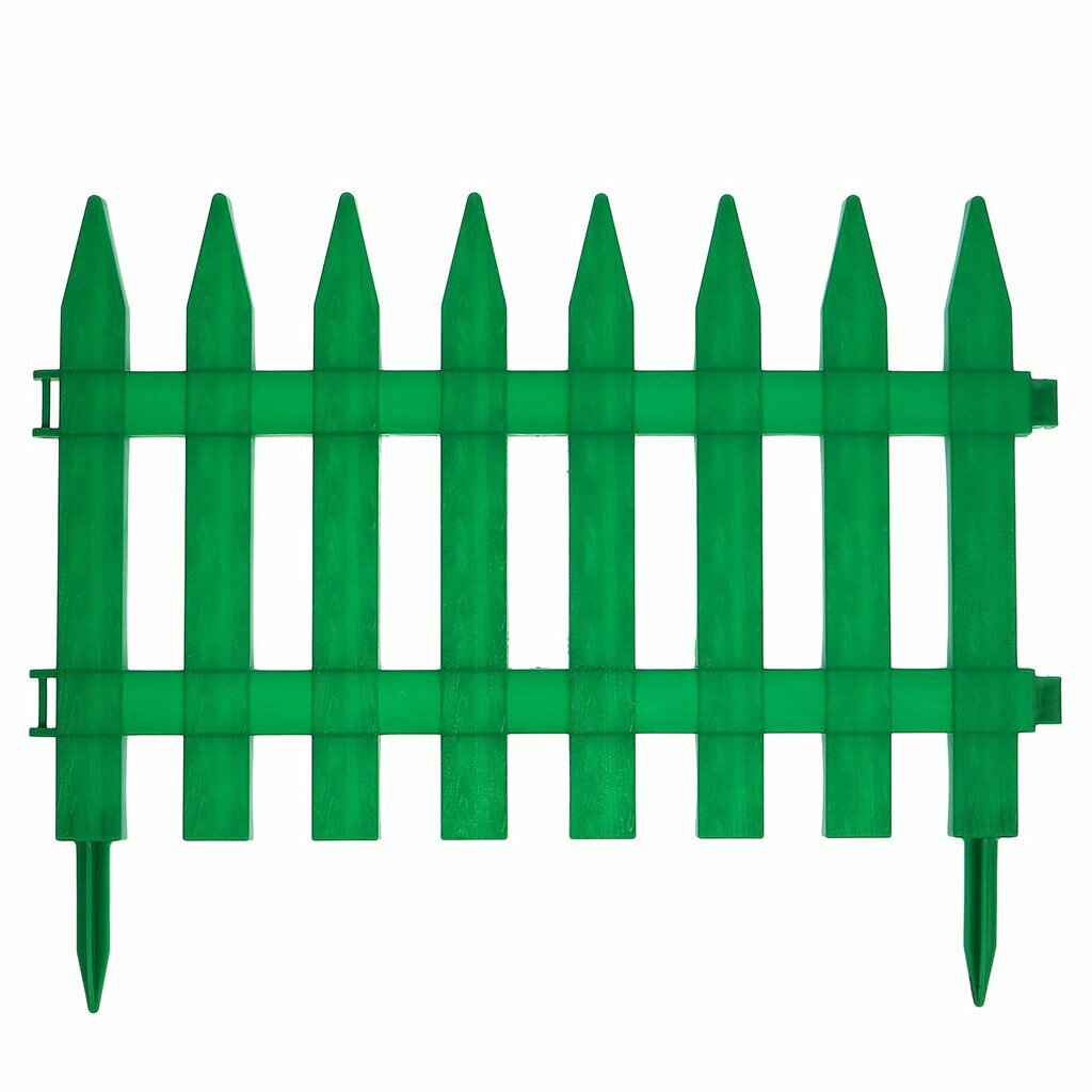 Штакетник «Частокол» зелёный — уменьшенная копия традиционных сельских ограждений из остро заточенных кольев. Помогает аккуратно оформить цветочные клумбы и грядки с агрокультурами, сформировать правильную геометрию участка и придать ландшафтному дизайну законченный вид. Выполняет не только декоративную, но и защитную функцию, мешая домашним животным и птицам разрывать землю у корней растений. Длина штакетника в сборке 3 метра.