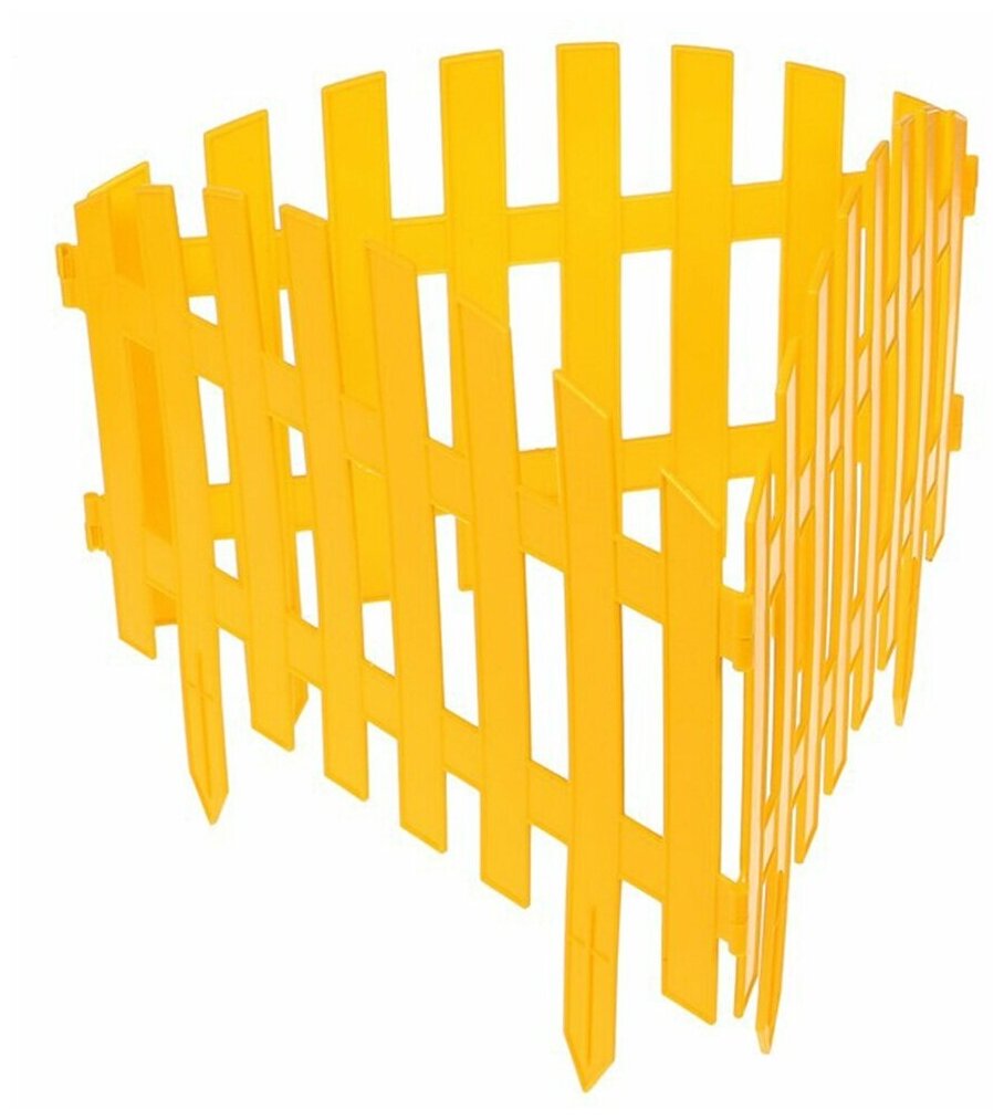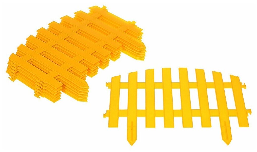 Штакетник «Волна» жёлтый — универсальное ограждение, которому непременно найдется применение на садовом или огородном участке. Состоит из модулей, которые можно располагать последовательно, вдоль границы участка, или замыкать в контур вокруг клумб и отдельных растений. Например, из четырех модулей можно сделать защитный мини-забор для розы, гладиолуса, уличной орхидеи или небольшого куста лилий, пионов, ирисов. Общая длина штакетника 3 м.