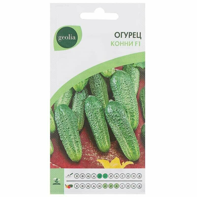 Огурец Конни, Geolia – сорт, который отлично зарекомендовал себя как раннеспелый и высокоурожайный гибрид. Стебель не ограничен в росте, листья морщинистые и имеют правильно-городчатый край. «Конни» подходит для выращивания в теплицах, в открытом грунте, и, даже на балконах. Первые плоды можно собирать уже через 47-50 дней после всхода. Огурчики сочные и хрустящие длиной 7-9 см, не склонные к перерастанию. Поверхность плодов покрыта частыми и мелкими бугорками.
