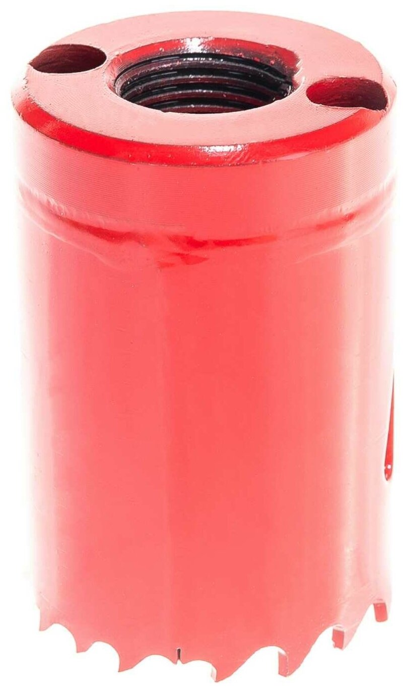 Коронка для металла Bi-Metall Matrix размером 35 мм предназначена для вырезания круглых отверстий правильной формы в металле, пластике, дереве, фанере или ДСП. Изготовлена из быстрорежущей стали HSS P6M5, твердость — 60-64 единицы по HRC (высокая).
