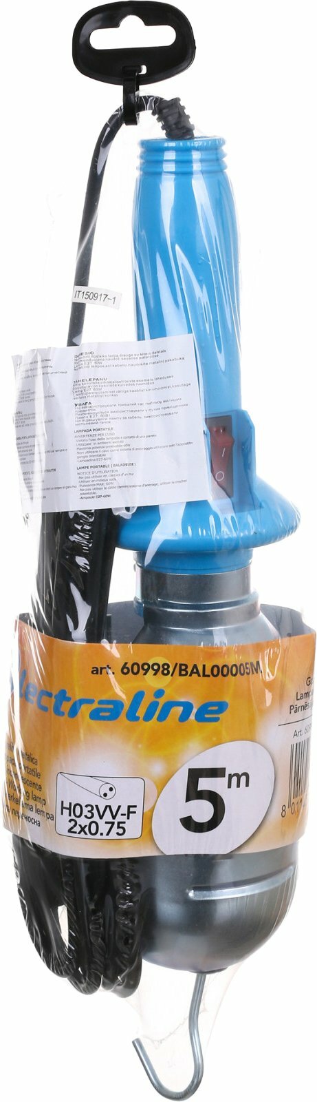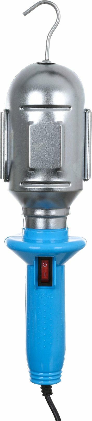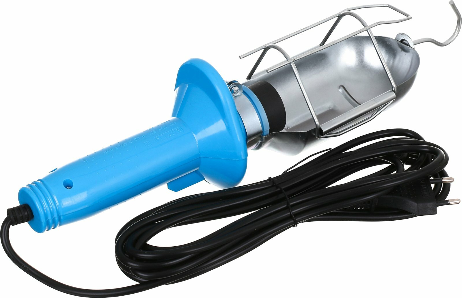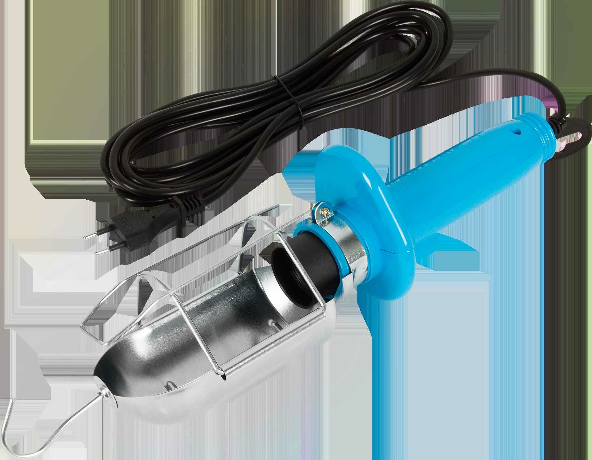 Удлинитель для переноса освещения, 5 м – предназначен для непродолжительного локального освещения рабочей зоны во время проведения работ в условиях слабой освещенности или при ее отсутствии. Корпус изготовлен из прочного пластика синего цвета, отражатель – металлический щит, на который нанесено антикоррозийное покрытие. Светильник укомплектован кабелем длиной 5 метров с вилкой стандарта 2,5А/250В. Имеется крюк для подвеса светильника на капот автомобиля, стену или потолок, с целью освобождения рук для работы.