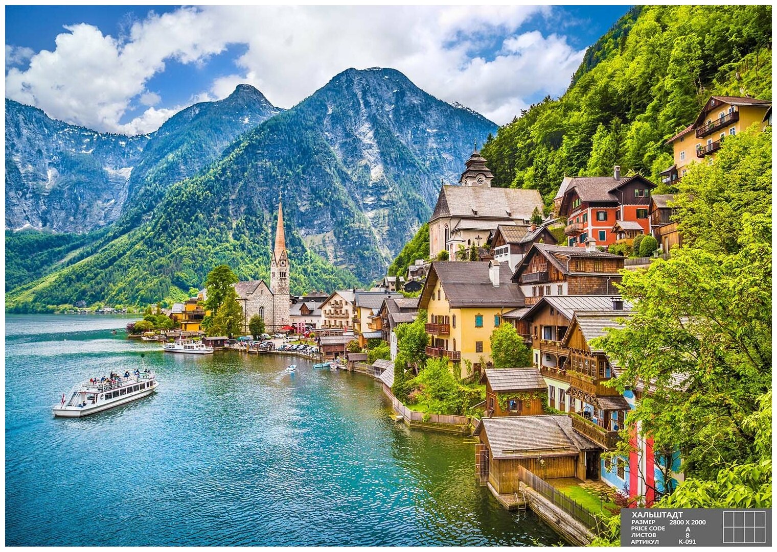 Фотообои бумажные «Хальштадт» ― декоративное покрытие для финишных отделочных работ внутри помещения. Главное отличие этого вида покрытия от классических бумажных обоев ― в том, что изготавливается частями при помощи широкоформатных принтеров. Внешняя сторона оформлена не узором, а тематическим рисунком.