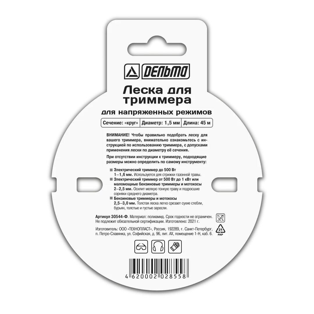 Леска для триммера Дельта ø1.5 мм 45 м круглая (ЛЕСКА Д/ТРИММЕРА "КРУГЛАЯ" 1,5ММ, 45М)