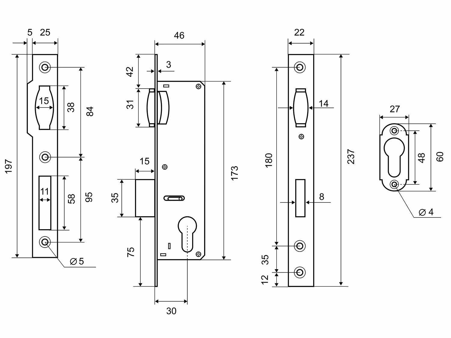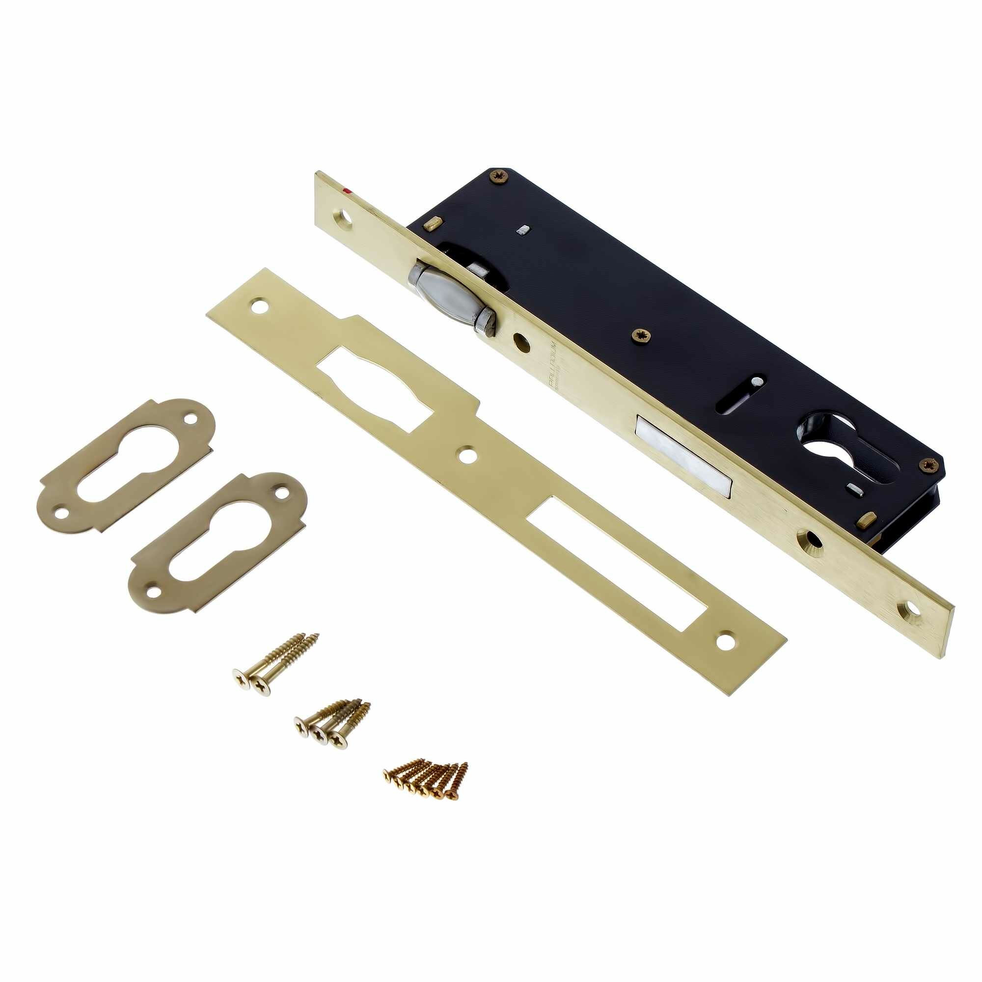 В комплект входит сам корпус, ответная планка, крепеж, декоративные накладки на цилиндровый механизм.