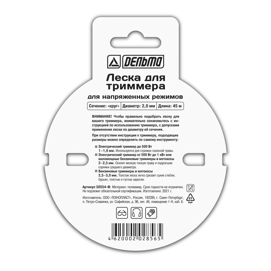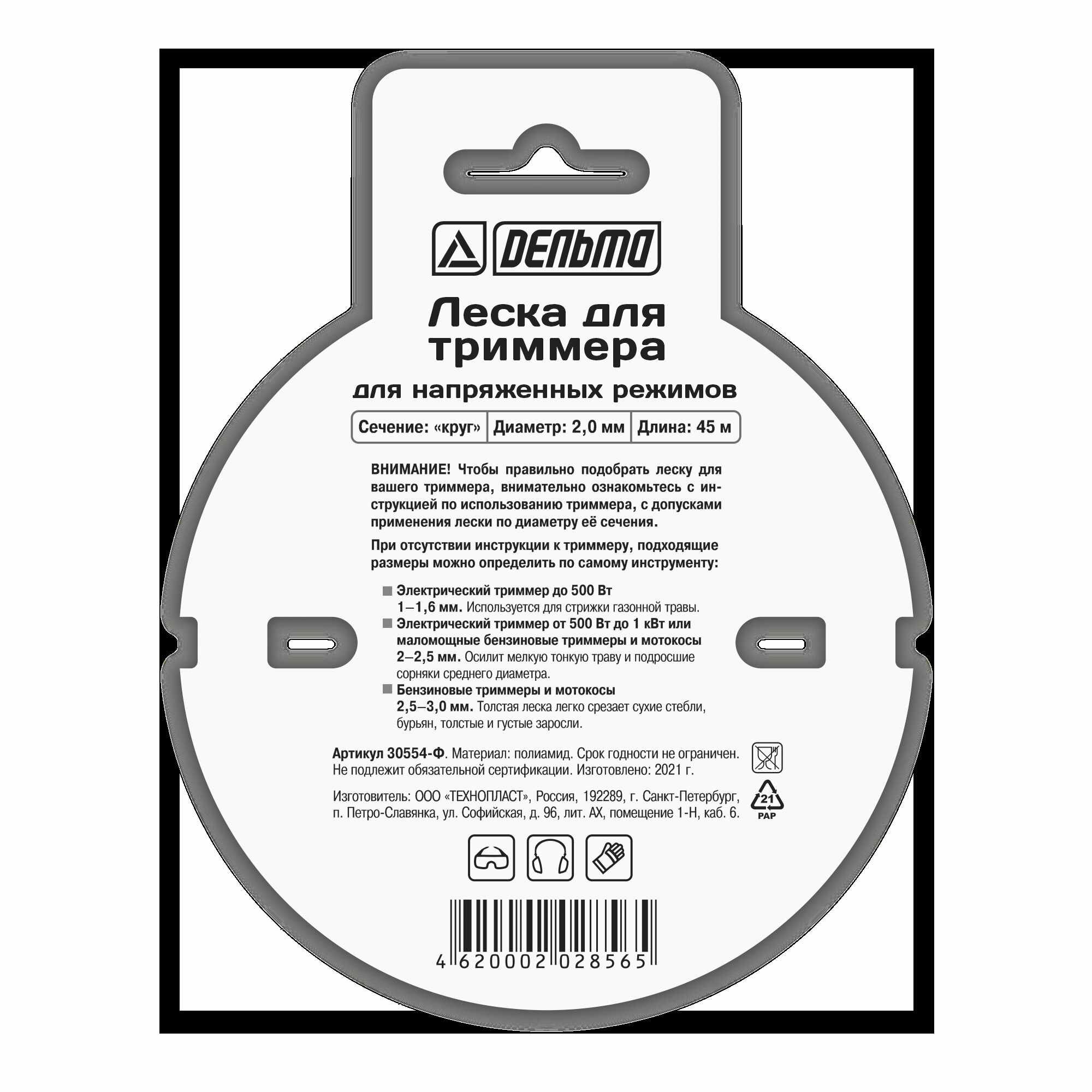 Код производителя: ЛЕСКА Д/ТРИММЕРА "КРУГЛАЯ" 2, 0 ММ, 45М