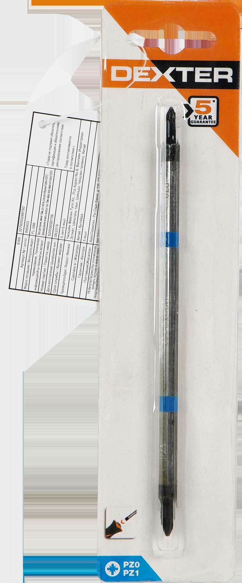 Жало сменное Dexter представляет собой двухсторонний металлический стержень длиной 155 мм с наконечниками типа PZ0/PZ155. Предназначено для совместного использования со съемной рукояткой для отвертки. Используется для выполнения точных работ по завинчиванию и отвинчиванию резьбовых крепежных изделий.
