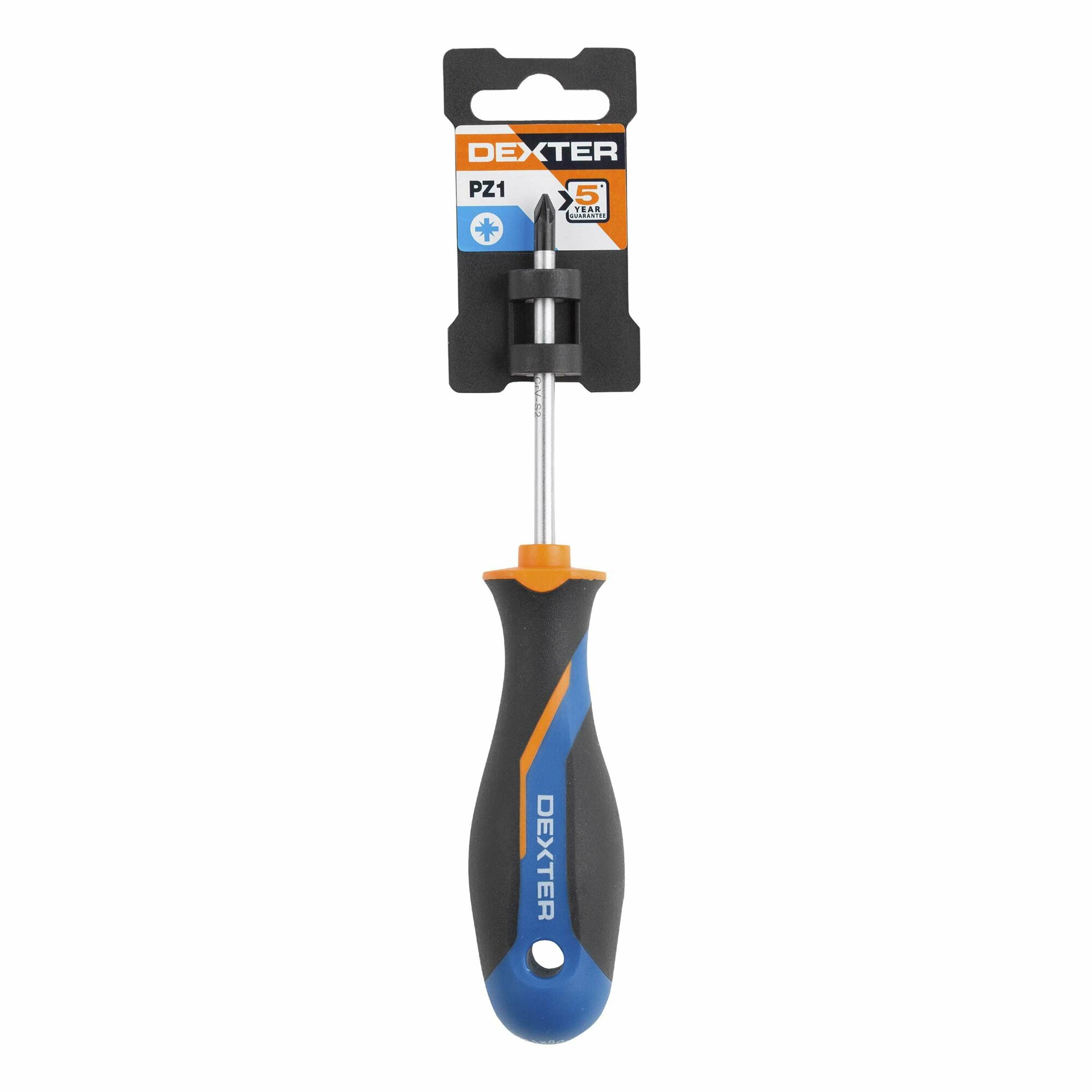 Отвертка крестовая Dexter ― ручной слесарный инструмент, применяемый для механического ввинчивания и отвинчивания изделий или крепежа с резьбой: шурупов, винтов, саморезов. Модель оснащена прочным металлическим стержнем с наконечником типа PZ1. Отвертка используется для подключения электричества и мелкого ремонта.