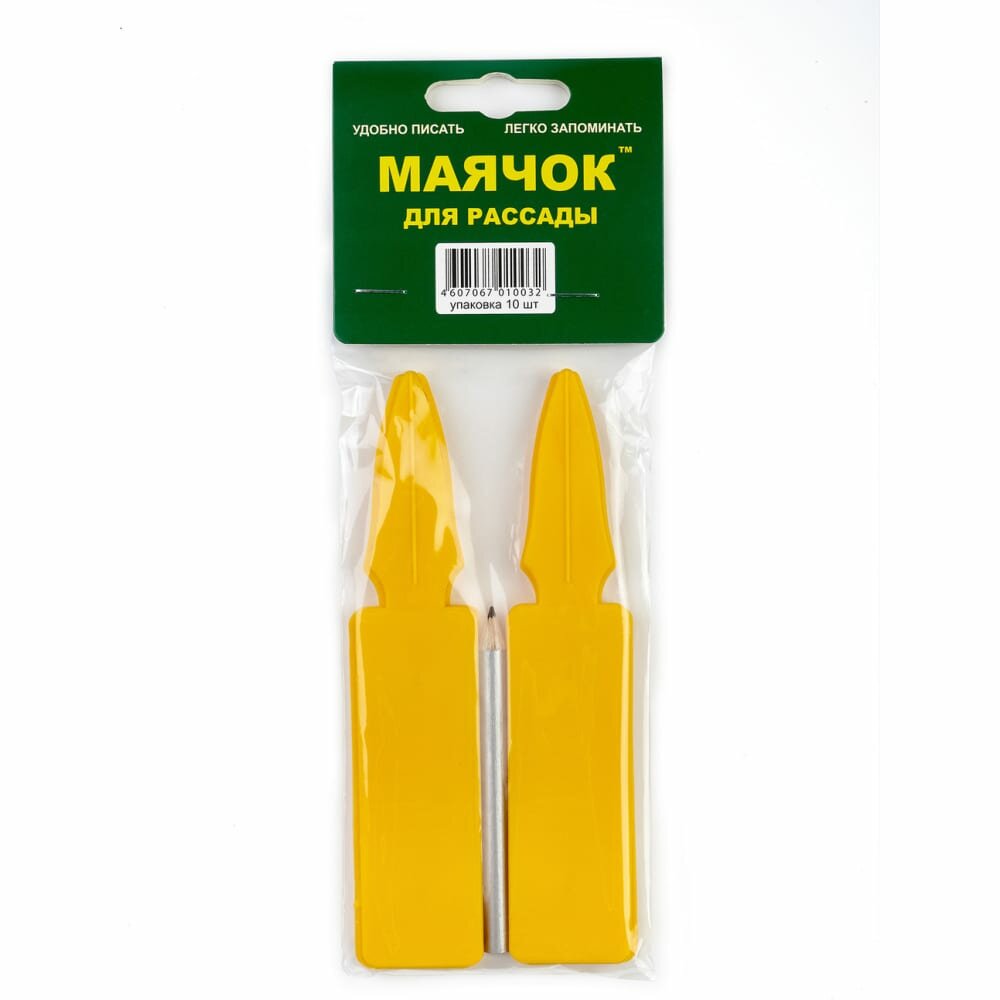 Маячок для рассады предназначен для маркировки растений. Представляет собой яркую пластинку размером 15 × 3 см. Изготовлен из качественного полипропилена, не выгорает на солнце и не разрушается. Надпись наносится химическим карандашом (входит в комплект) или перманентным маркером. Маячки поставляются набором по 10 шт.