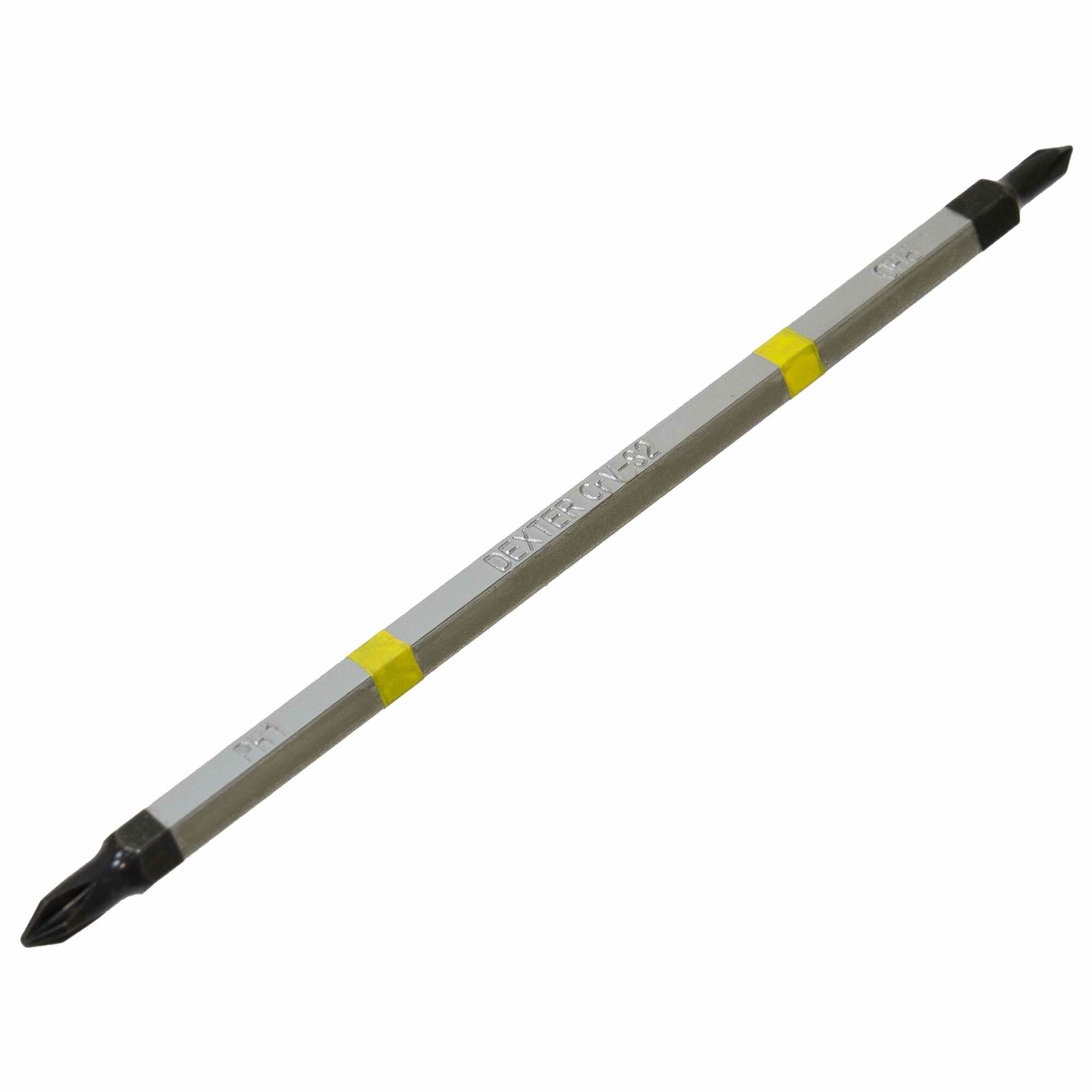 Жало сменное Dexter представляет собой двухсторонний металлический стержень длиной 155 мм с наконечниками типа PH0/PH1. Предназначено для совместного использования со съемной рукояткой для отвертки. Используется для выполнения точных работ по завинчиванию и отвинчиванию резьбовых крепежных изделий.