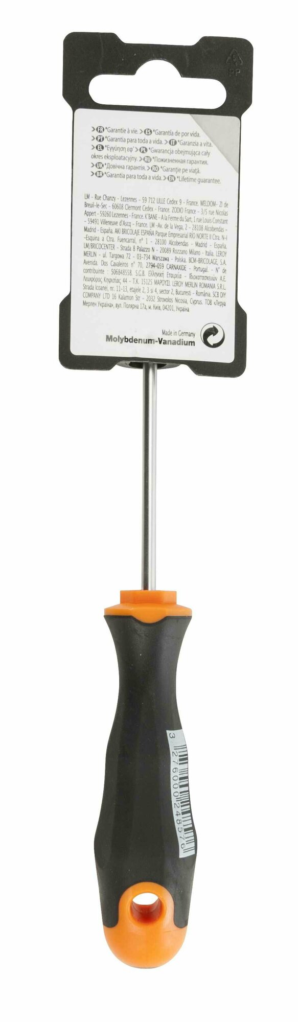 Отвертка шлицевая Dexter «Pro» ― ручной инструмент, используемый при монтаже или демонтаже крепежных изделий с резьбой: саморезов, шурупов, винтов и т. д. Представляет собой хромованадиевое стальное жало с рабочим наконечником типа 3.5 и рукояткой. Модель подходит для подключения электричества и мелкого ремонта и может использоваться как в профессиональной деятельности, так и при выполнении простых бытовых задач.