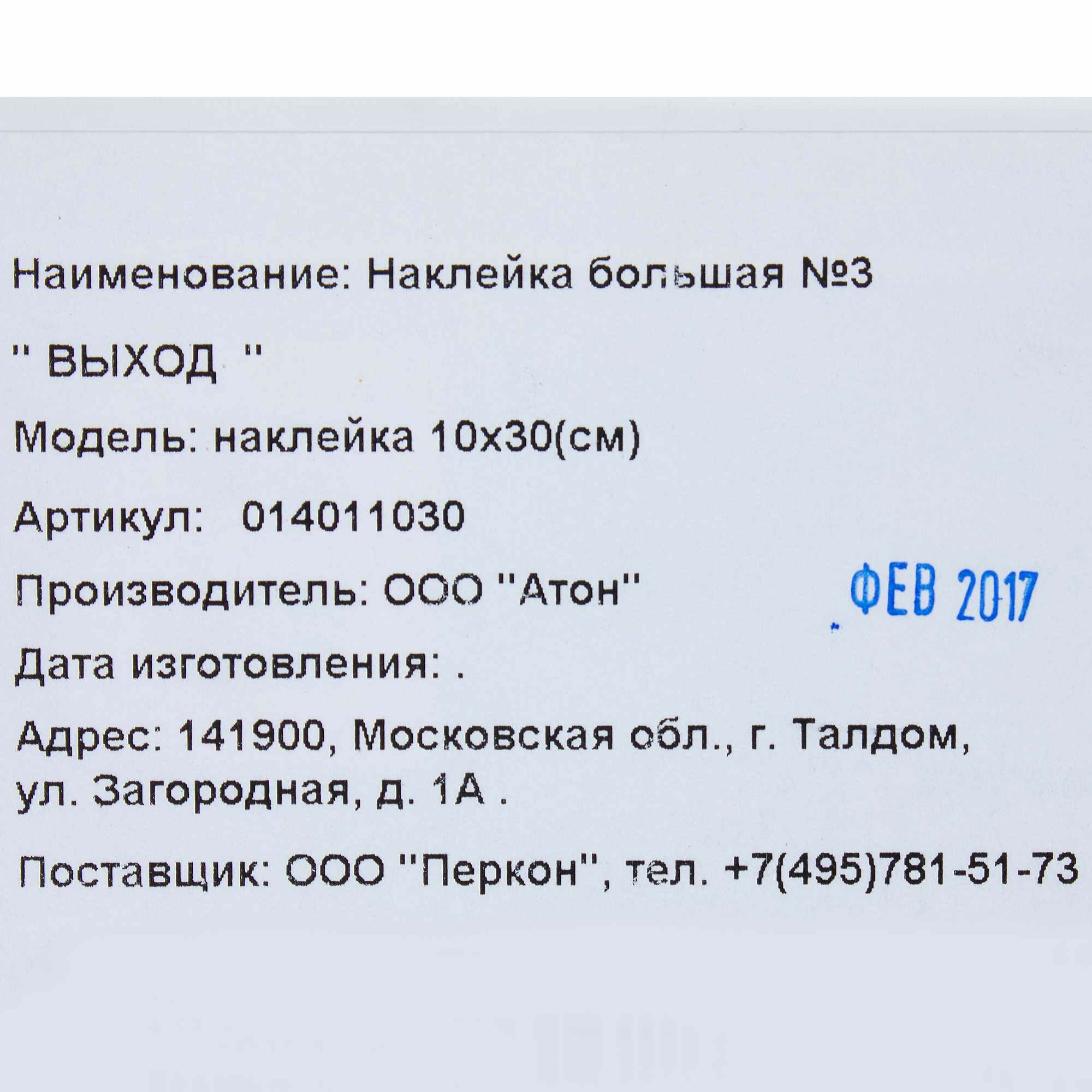 | Модель продукта | НАКЛЕЙКА БОЛЬШАЯ "ВЫХОД" |