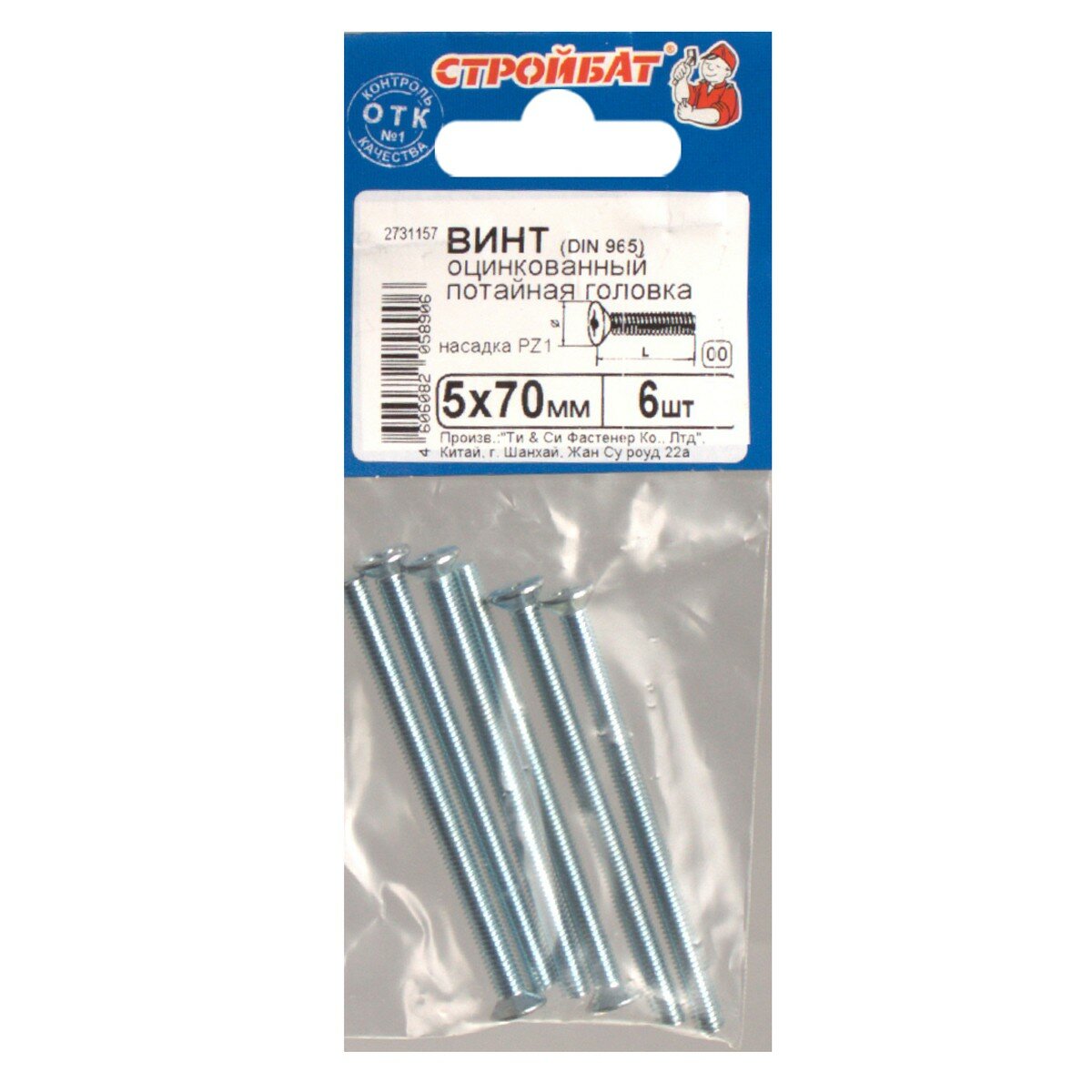 Винт потайной DIN 965 M5x70 мм 6 шт. Стройбат