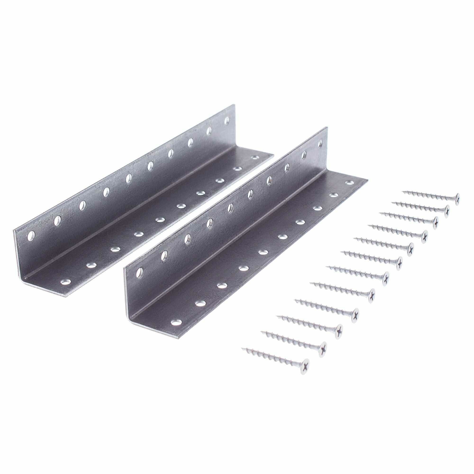Комплект предназначен для крепления одной ступени. В него входят два уголка и шурупы.