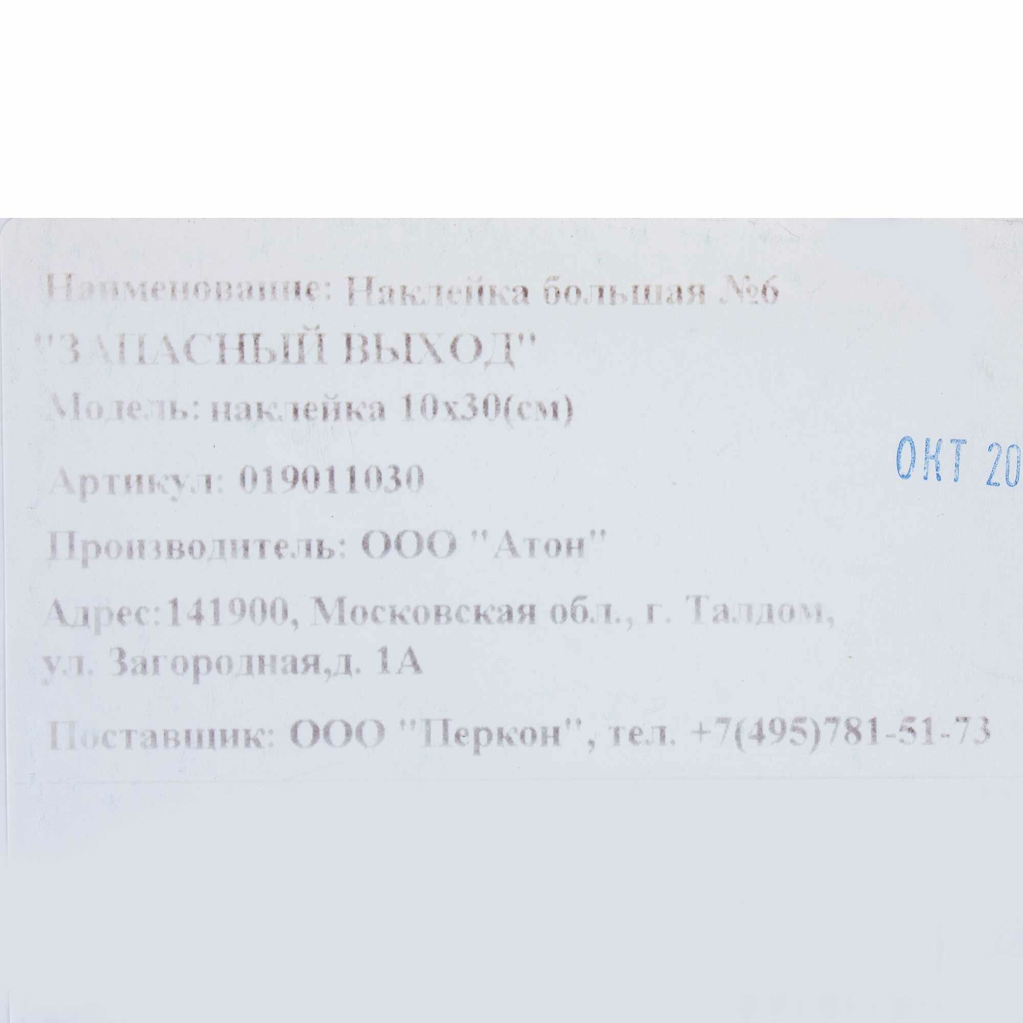 | Модель продукта | НАКЛЕЙКА БОЛЬШАЯ "ЗАПАСНЫЙ ВЫХОД" |