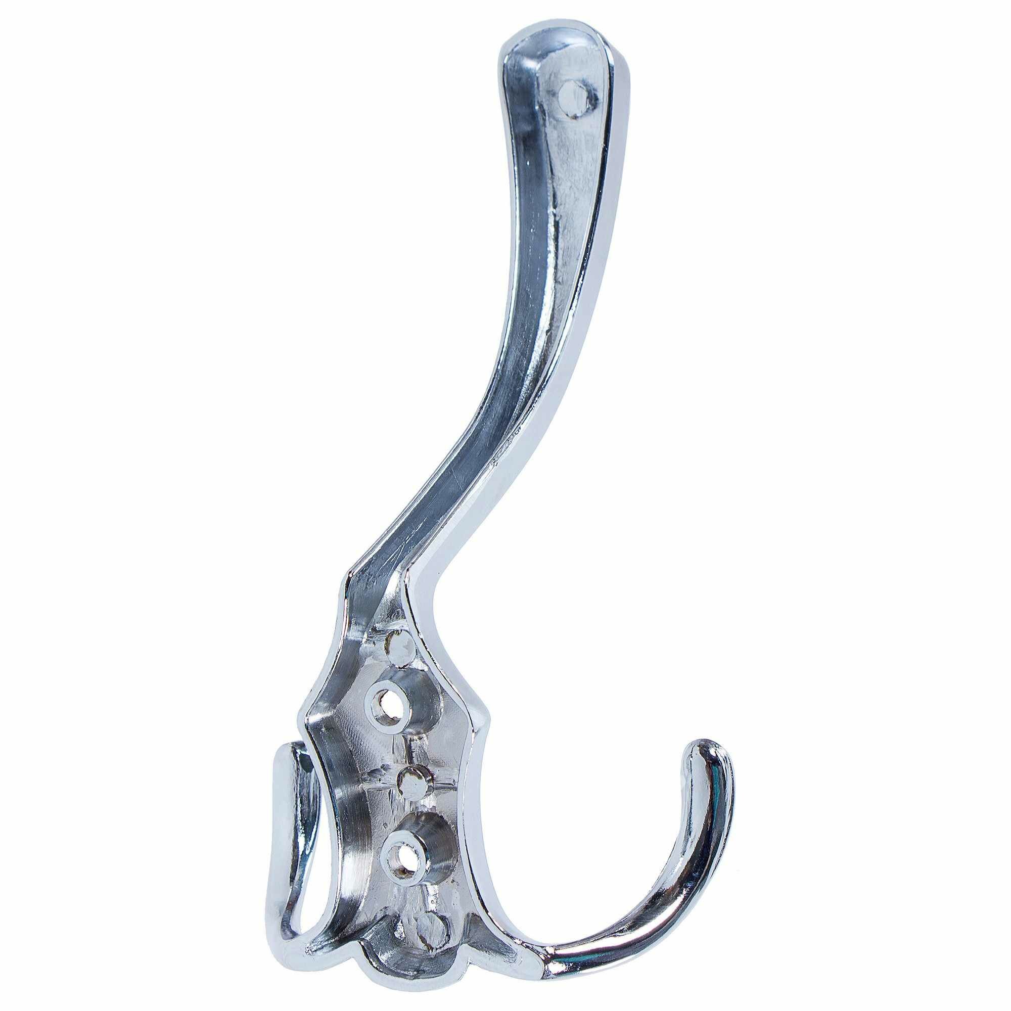 Крючок мебельный тройной — изделие, предназначенное для размещения одежды и различных предметов обихода. Модель снабжена 3 держателями. Цвет — серебристый (хромирование).