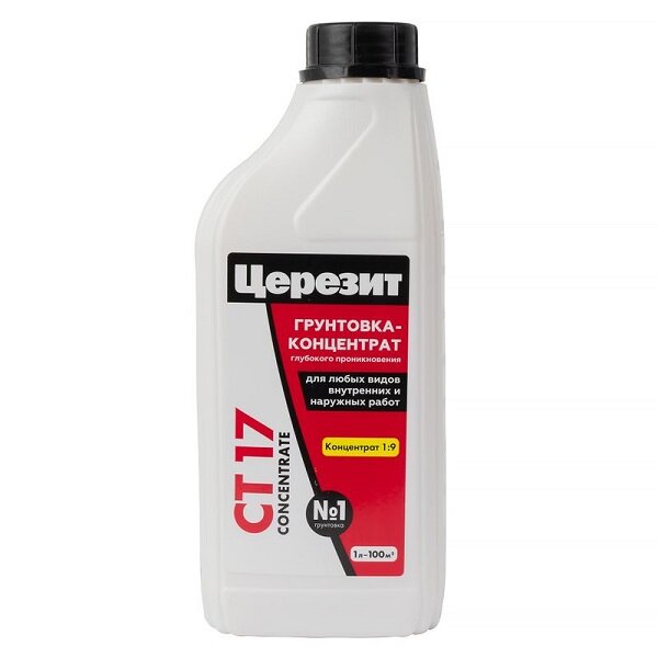Грунт-концентрат Ceresit CT17 представляет собой бесцветный состав глубокого проникновения, который может использоваться снаружи и внутри помещений. Подходит для обработки непрочных поверхностей и оснований из впитывающих материалов — бетона, камня, кирпича любой разновидности, ДСП, гипсокартона, штукатурки разных типов (на основе извести, цемента, гипса). Благодаря отсутствию органических растворителей грунтовка не имеет неприятного запаха и не выделяет вредных испарений.