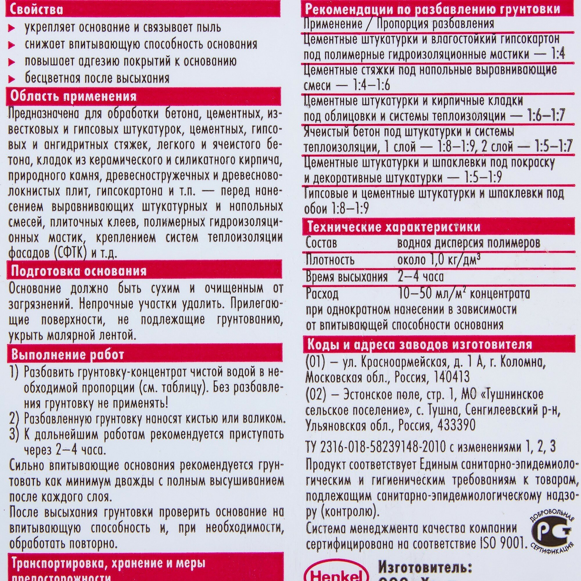 Грунт-концентрат позволяет качественно подготовить поверхность к отделке штукатуркой, напольной смесью, мастикой, покрытию слоем теплоизоляции или плиточного клея. Состав обладает следующими свойствами:
