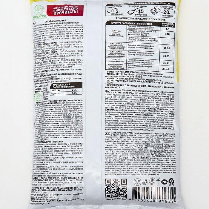 Сульфат аммония или Аммоний сернокислый. Альтернатива мочевине для исключения накопления нитратов.