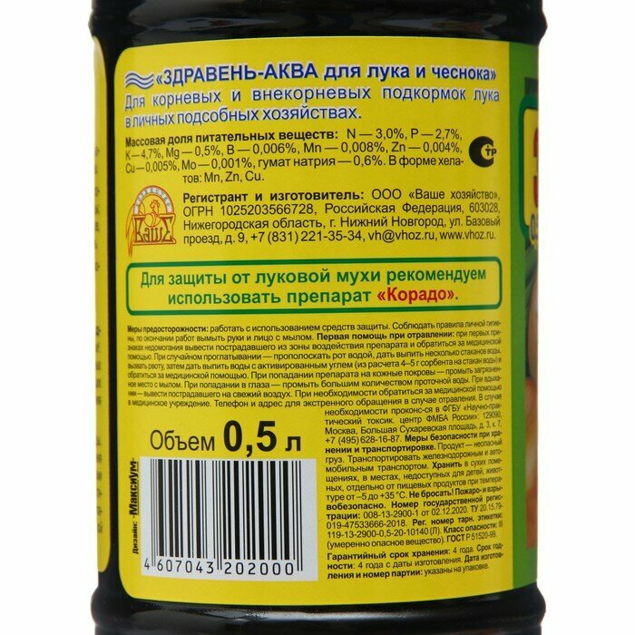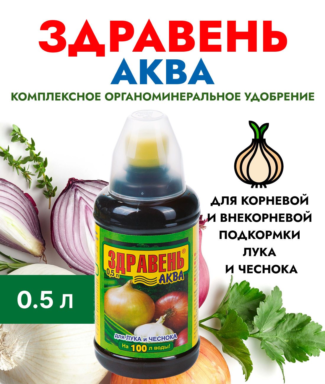 Удобрение «Здравень Аква» для лука и чеснока 0.5 л Леруа Мерлен