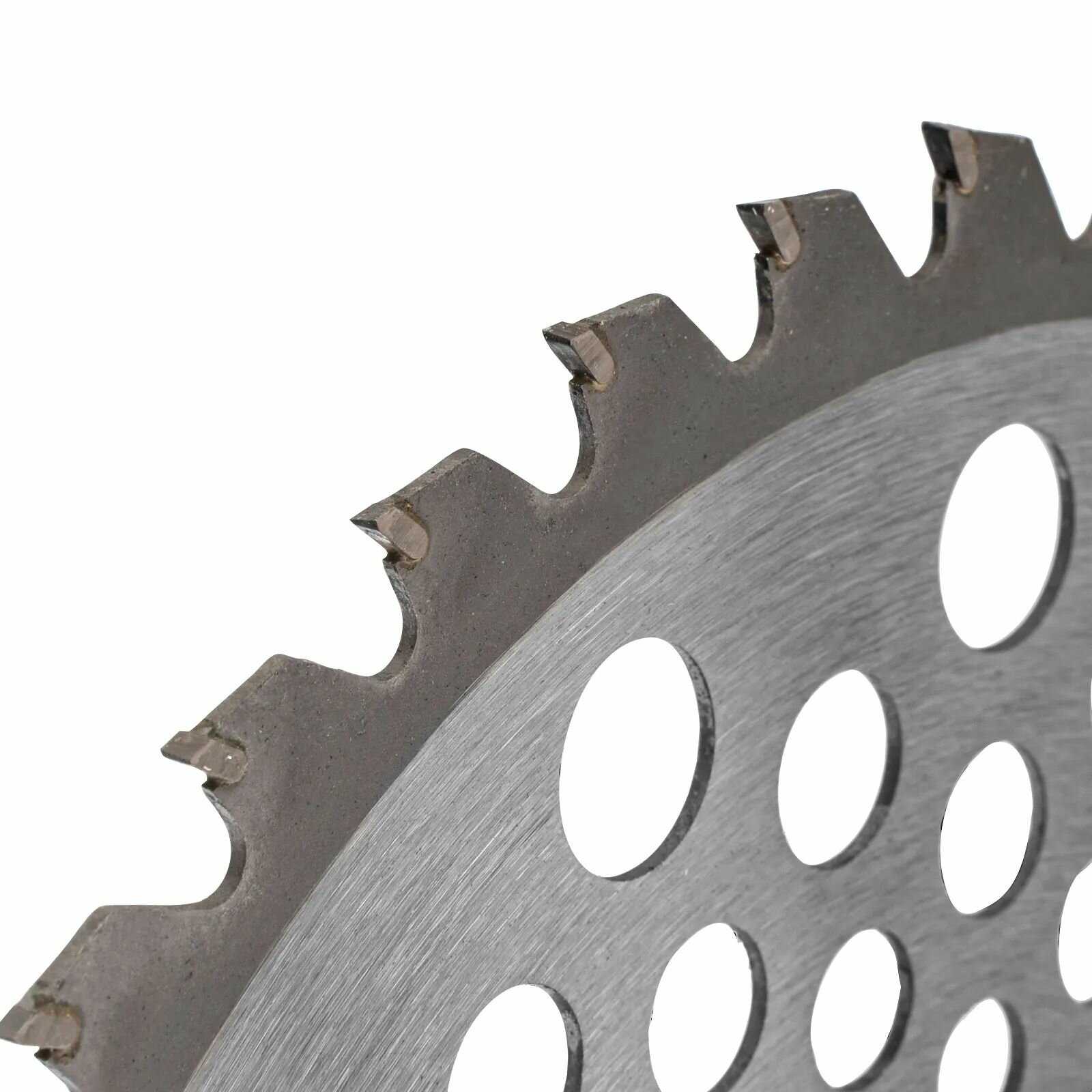Нож для триммера с 40 зубьями и перфорацией идеально подходит для быстрого скашивания молодой и мягкой травы любой высоты. Большое количество зубьев позволяет мелко измельчать растительность, не наматывая ее и не замедляя работу (не нужно останавливаться, чтобы почистить режущий инструмент). Кроме травы, нож справится с молодыми деревьями с толщиной ствола в несколько сантиметров и с бурьяном.