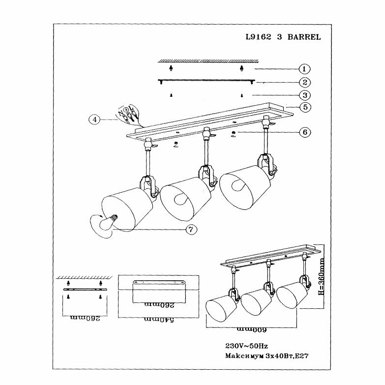 | Максимально допустимая мощность лампы (Вт) | 40 |