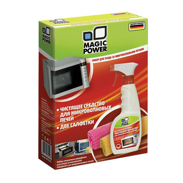 | Состав набора | Средство Magic Power для духовых шкафов, 500 мл Микрофибровая салфетка Magic Power для ухода за духовыми шкафами Микрофибровая салфетка Magic Power для ухода за бытовой техникой |