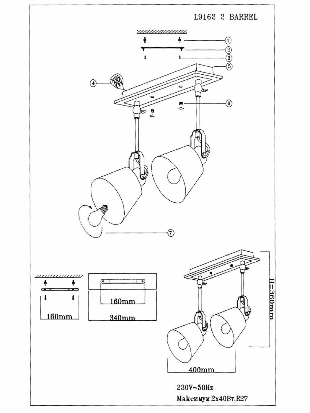 | Максимально допустимая мощность лампы (Вт) | 40 |