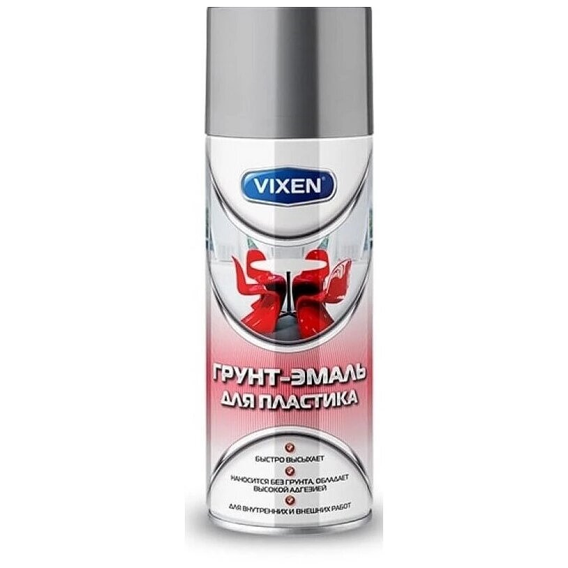 Грунт-эмаль для пластика Vixen 9003 — отделочный материал на базе акрила. Используется для покрытия поверхностей из пластика и полистирола, винила. Также подходит для окрашивания изделий из металла и дерева, керамики и стекла. Грунт-эмаль поставляется в емкости объемом 520 мл с распылителем. Состав применим для работ внутри и снаружи помещения при температуре от +15 до +30 °С.